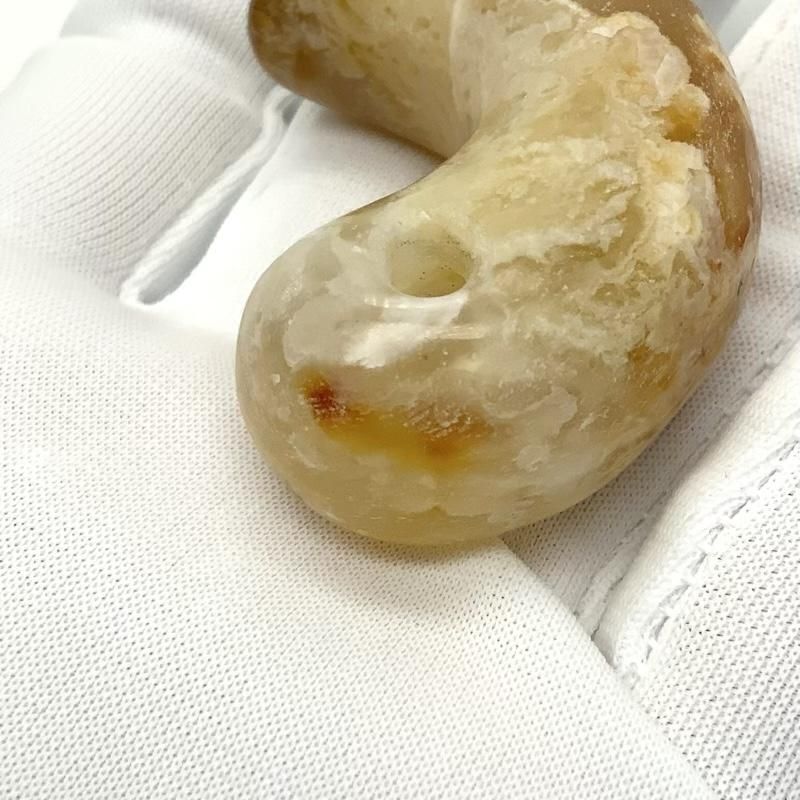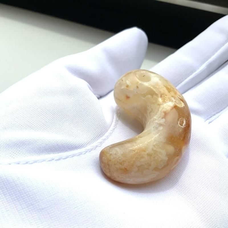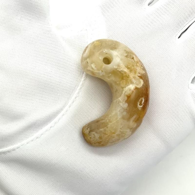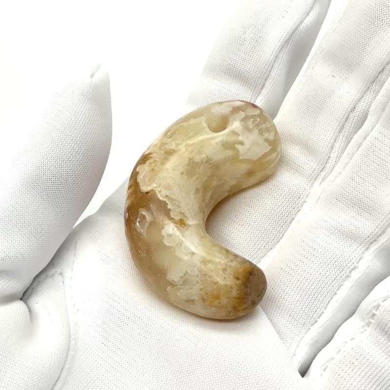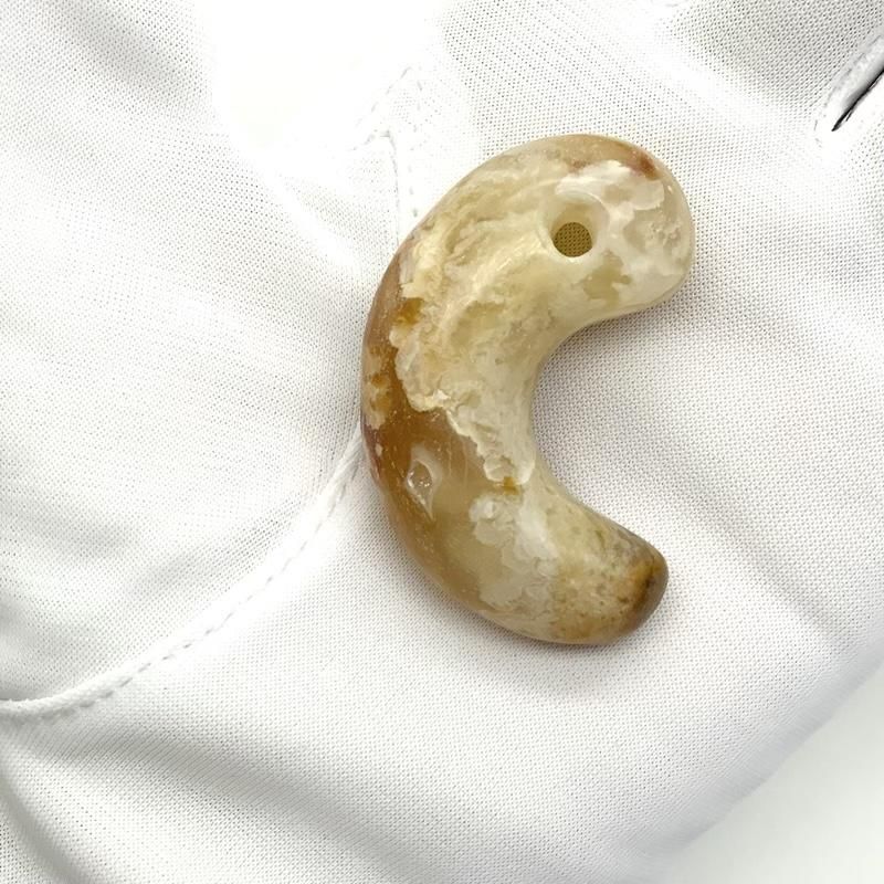 稀少な花仙山産勾玉をお手元にどうぞ。