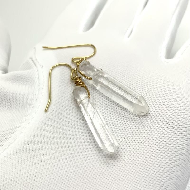 【 水晶ポイント ピアス 】 クォーツ 金色 透明 point パワーストーン ワイヤーラップ ゴールド