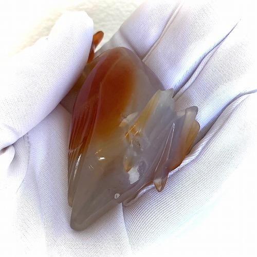 めのうの産地は不明ですが、透明感と艶があり、細部にまでこだわった彫りとなっています。