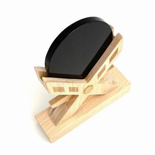 「千木」をモチーフにしたオリジナルの台とセットでお届けいたします。