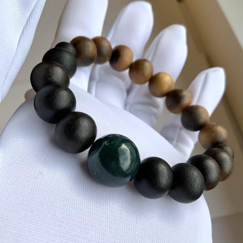 出雲石/碧玉を主珠に組み込んだ黒柿玉のブレスレットです。