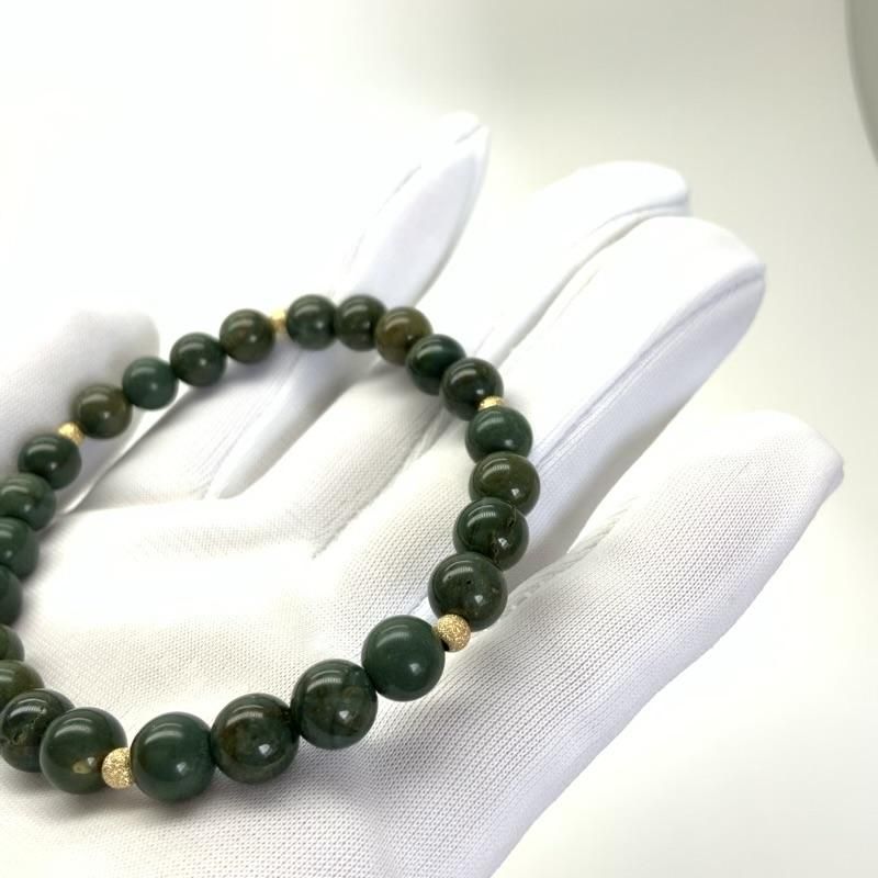 【 碧玉 ブレスレット 】 出雲石 国産 花仙山 青めのう 緑 限定品 稀少 レア パワーストーン