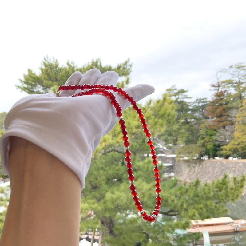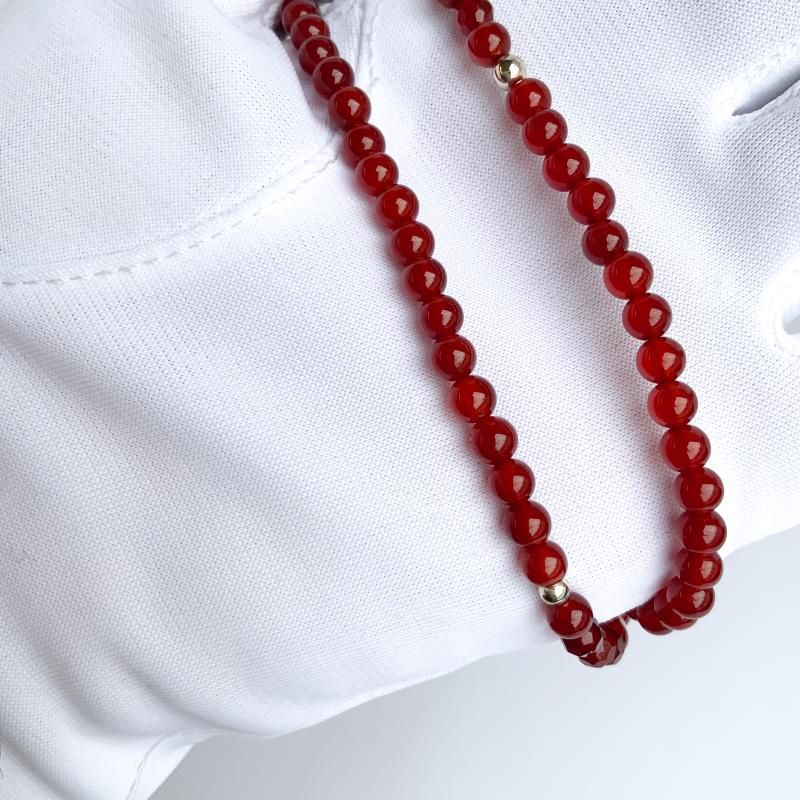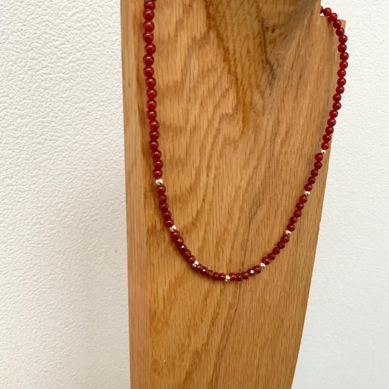 赤いめのうの4mm玉を丁寧につないだ蔵出しのネックレスです。