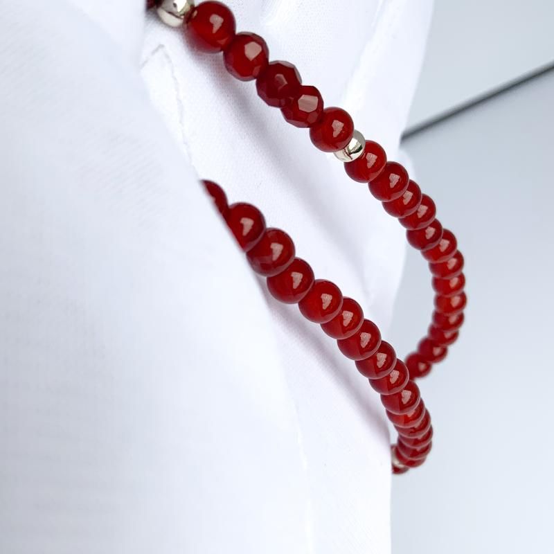 深い赤色のめのうがシンプルさの中に上品さを醸し出しています。