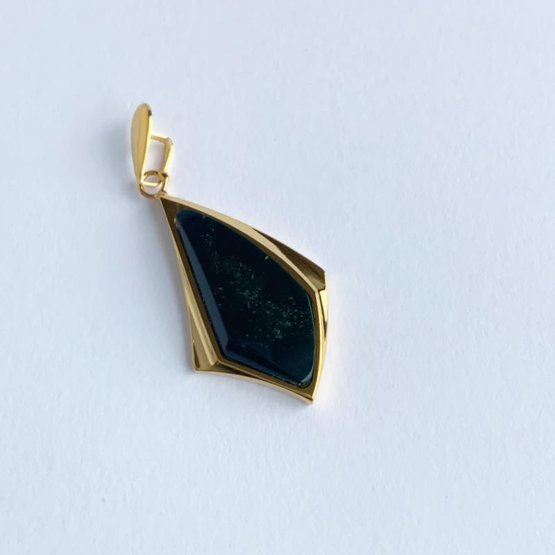 【 碧玉 ペンダントトップ 】 出雲石 国産 花仙山 青めのう 緑 天然石 パワーストーン ゴールド色 金色