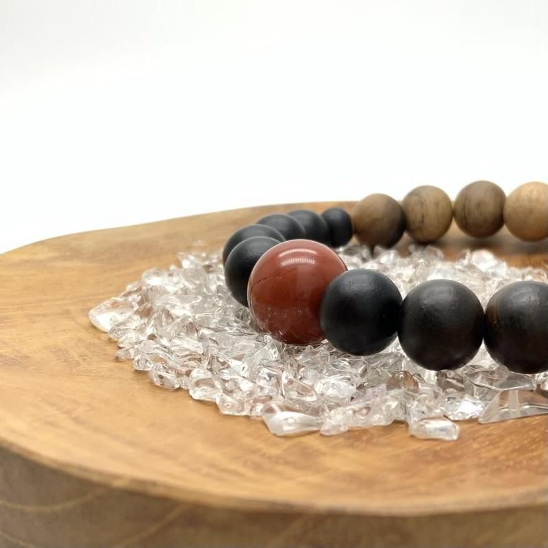【 佐渡の赤玉 出雲黒柿 ブレスレット 】