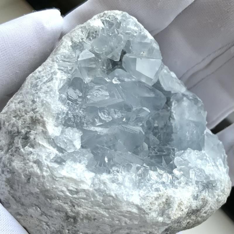 硬度が柔らかいセレスタイトは、衝撃などで割れやすく、また、結晶を支える母岩の