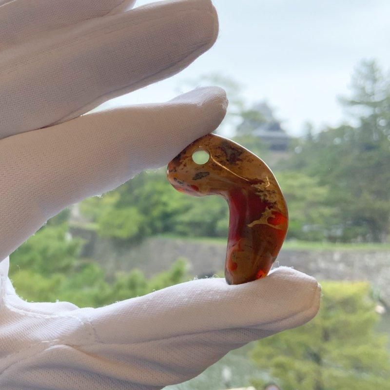 アンティーク調ともいえる雰囲気をまとった貴重な一点物の勾玉です。