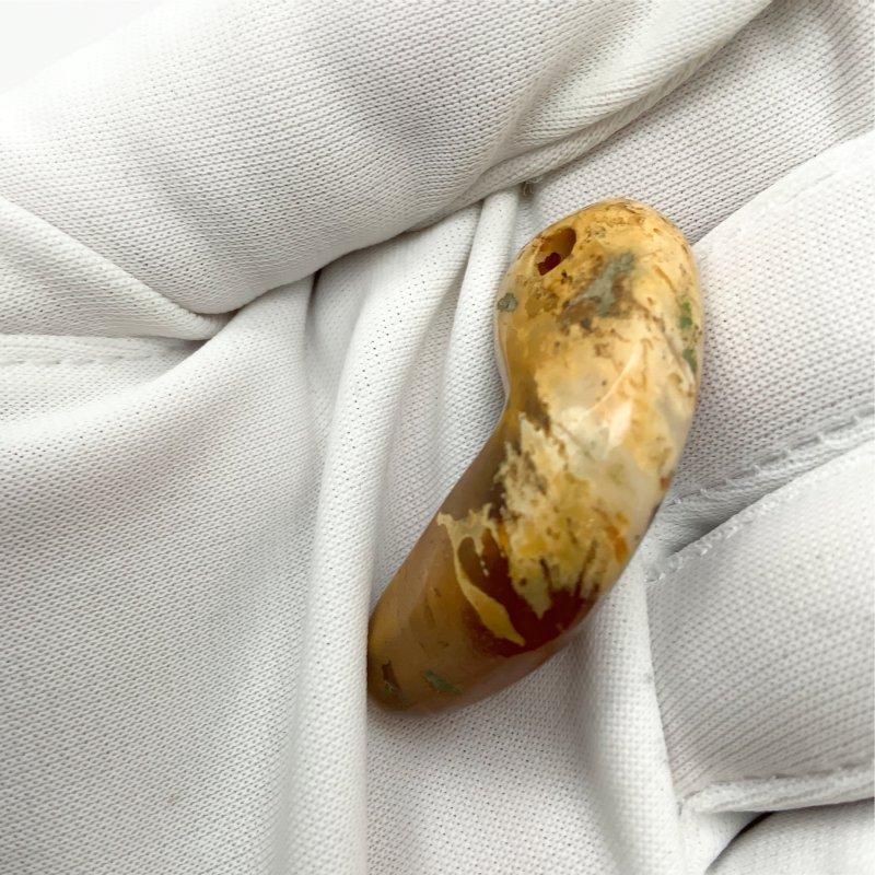 【 花仙山産めのう 勾玉 】 アンティーク 蔵出し カーネリアン 赤白 赤めのう 天然石 限定 一点物 まがたま 天然石