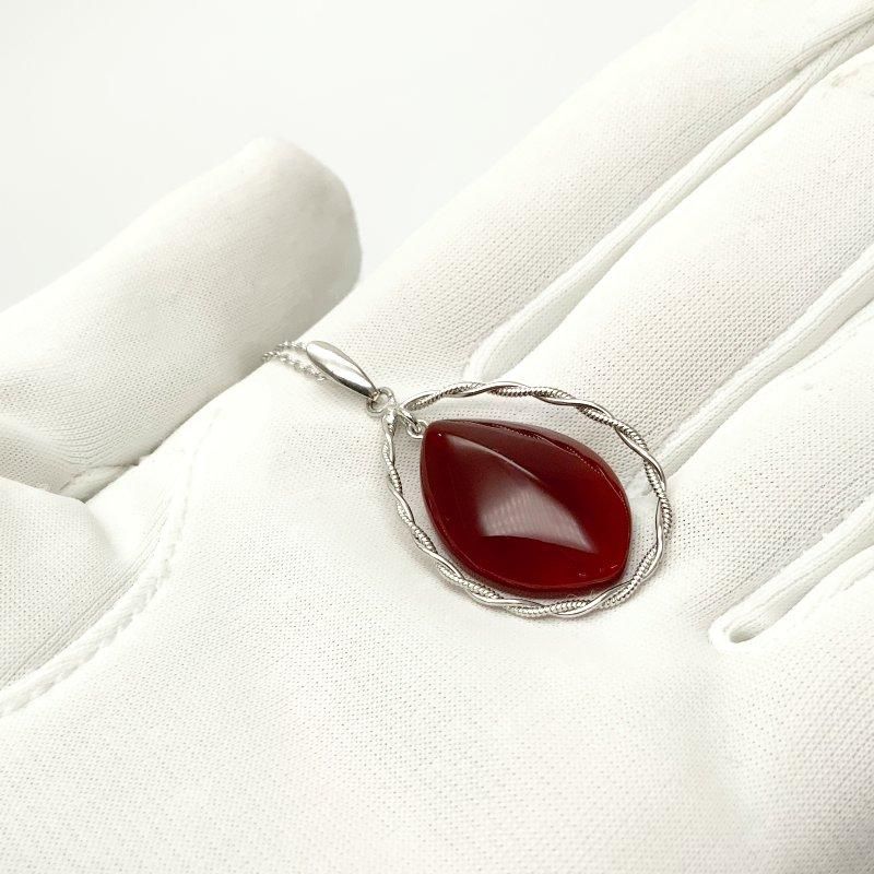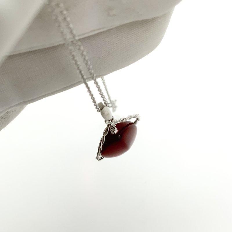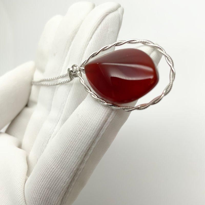 シルバーのチェーンは輝きを保ち、赤いめのうをよりひきたたせてくれます。