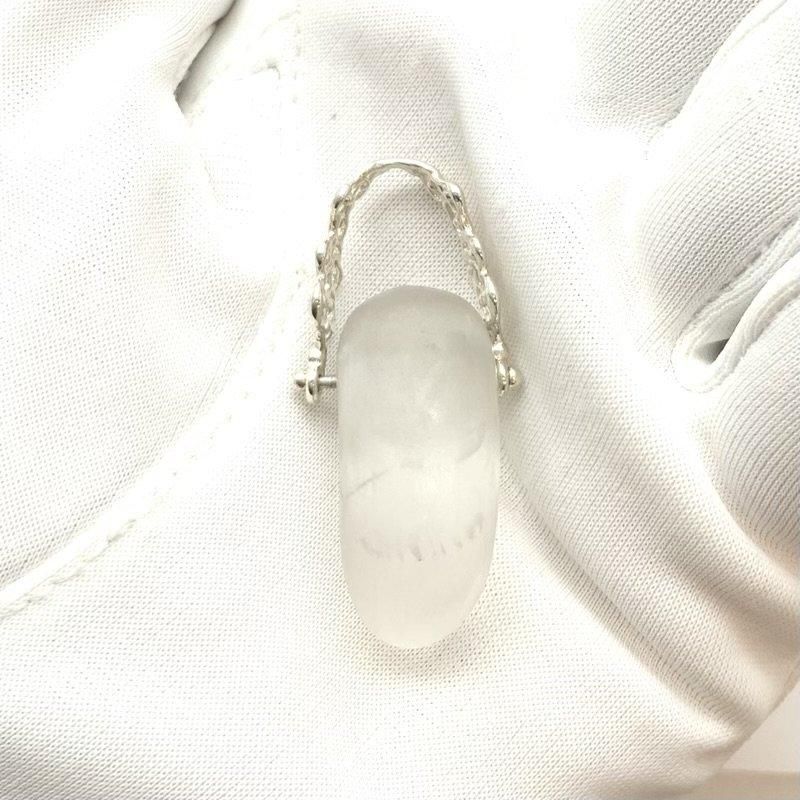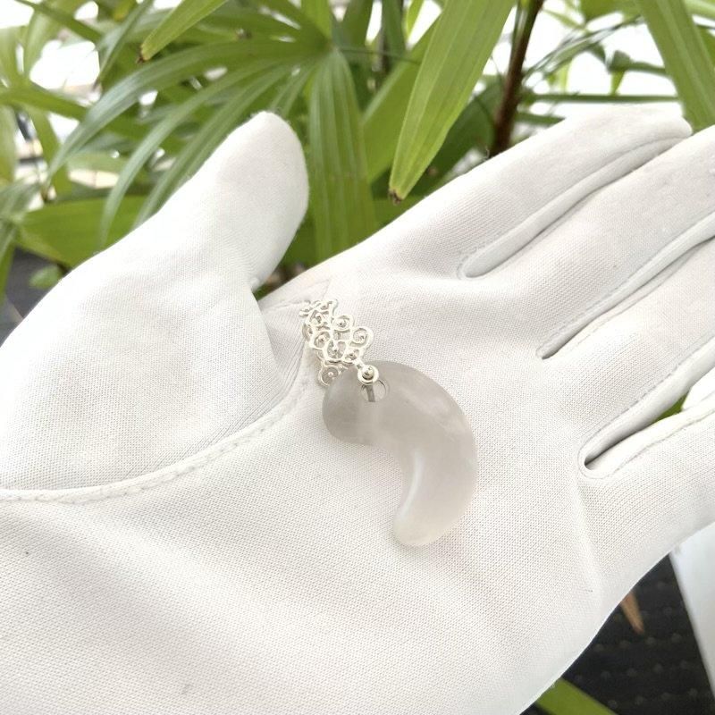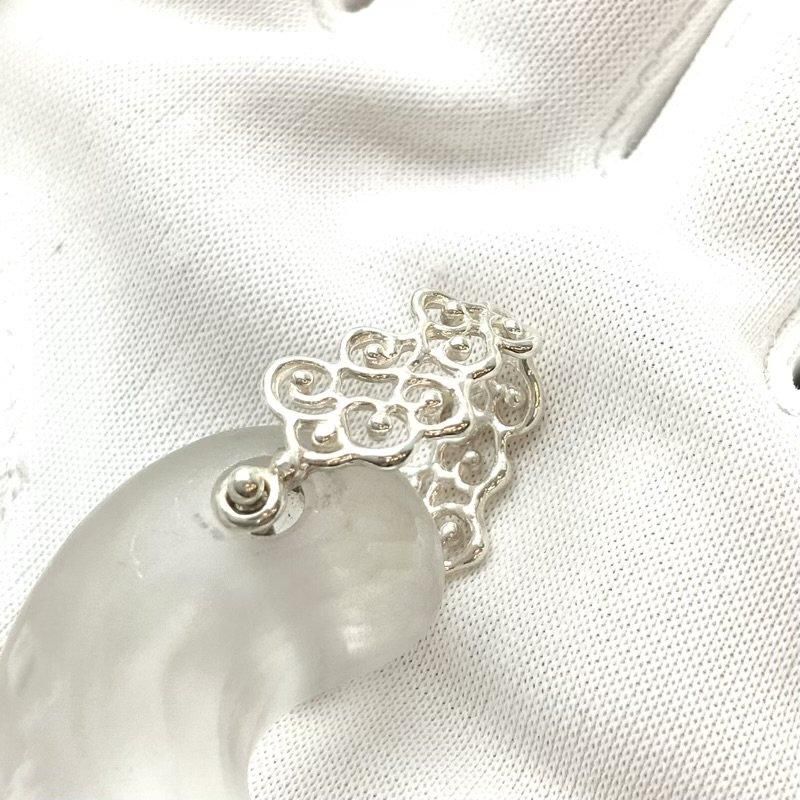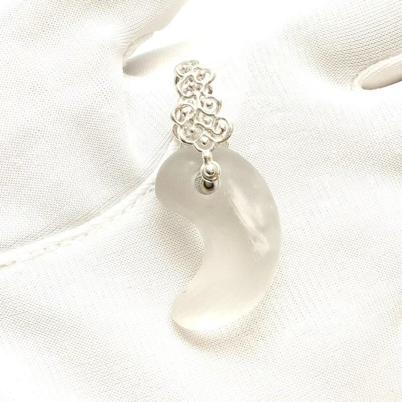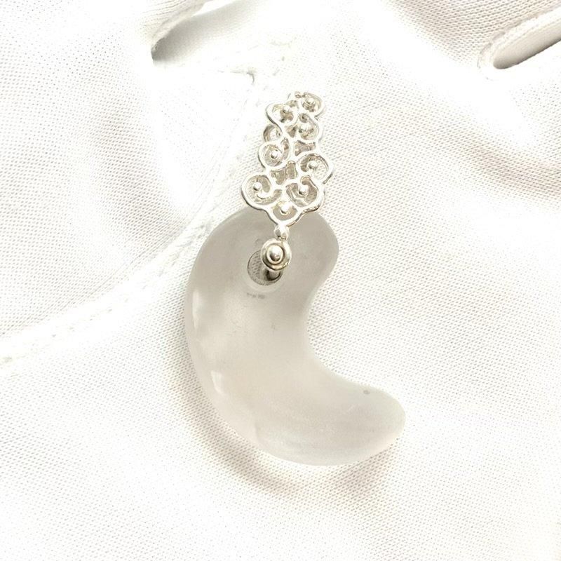 すりガラスのような表面の勾玉に、シルバーの輝きが映える美しいペンダントトップ。