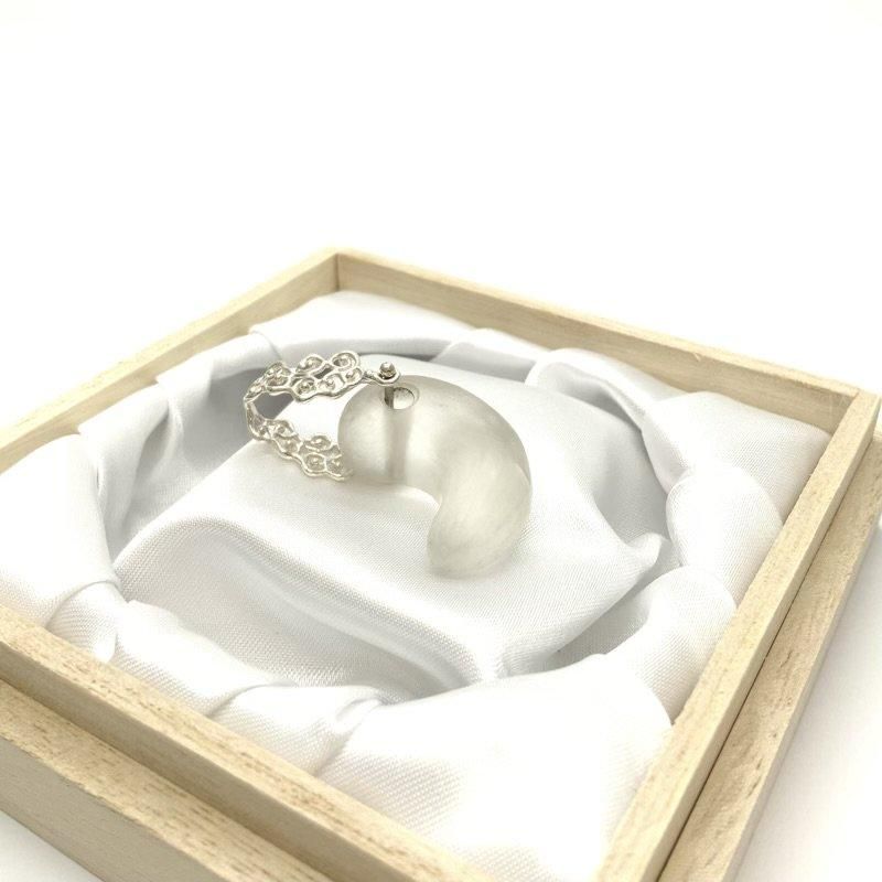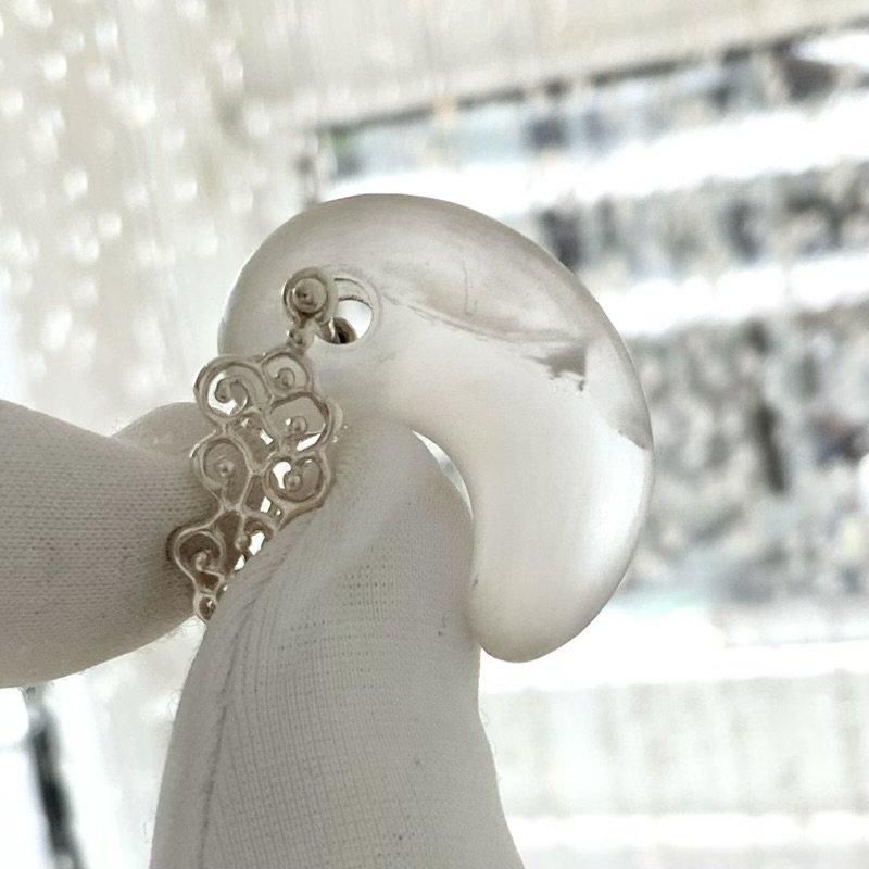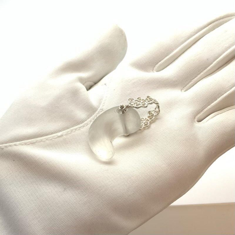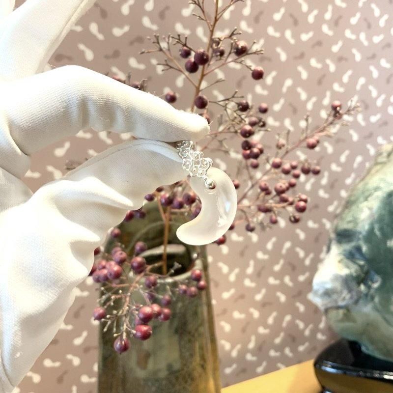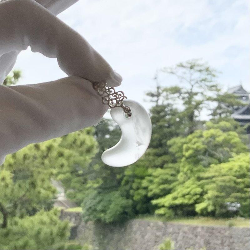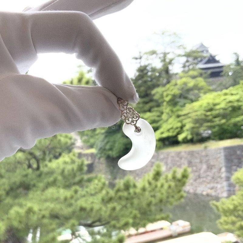 すりガラスのような表面の勾玉に、シルバーの輝きが映える美しいペンダントトップ。