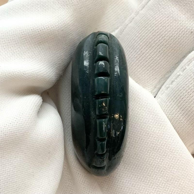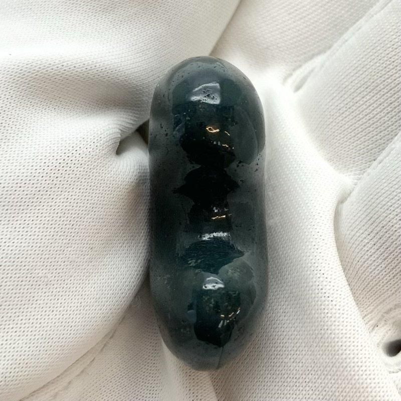 そこに縞や斑紋などの地模様が加わり、この深碧色の石の個性と美しさは