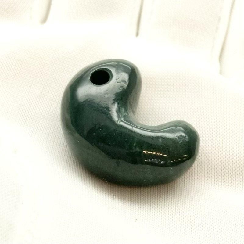 希少な碧緑色の原石から生み出された勾玉は、色も地模様も様々。