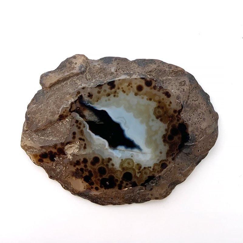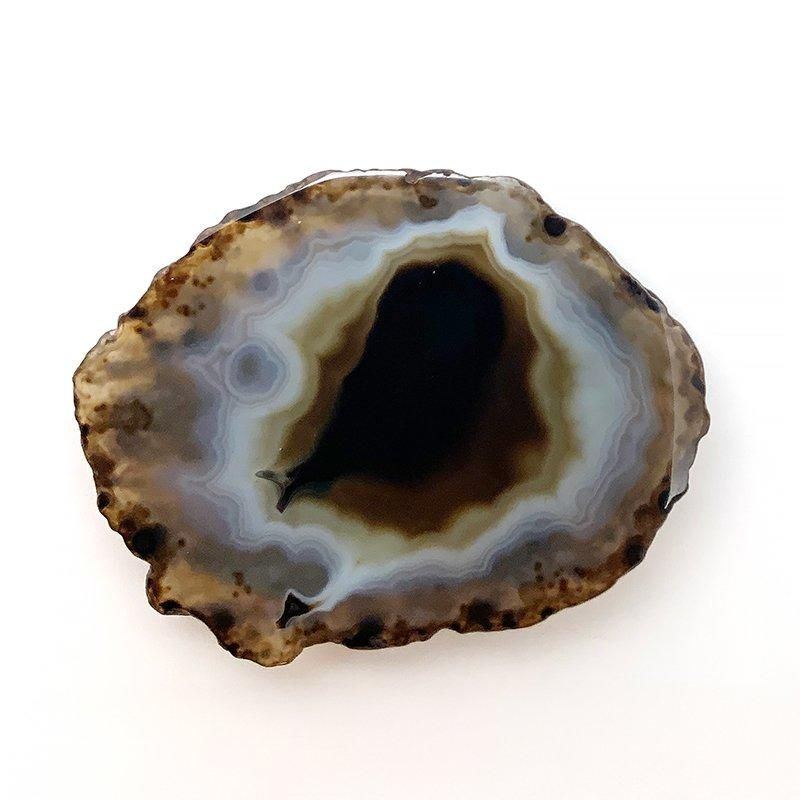落ち着いた茶褐色をした波打つような形状のめのうプレートは、まるで大地のような安定感を醸し出しています。