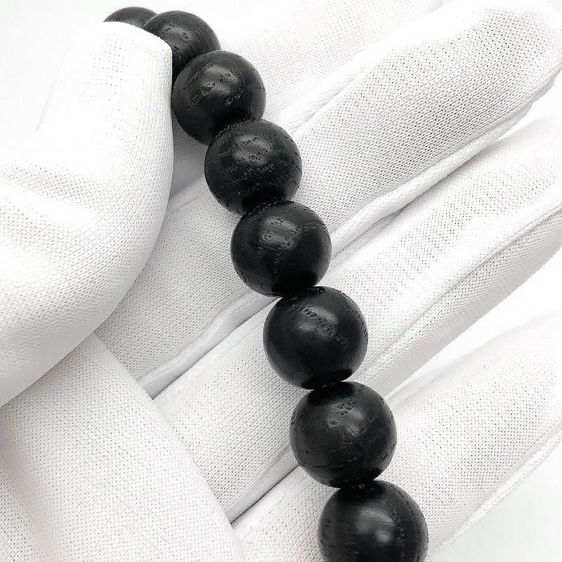 天珠を挟むようにモリオンビーズを加え、身に着けるものの邪気を払い、
