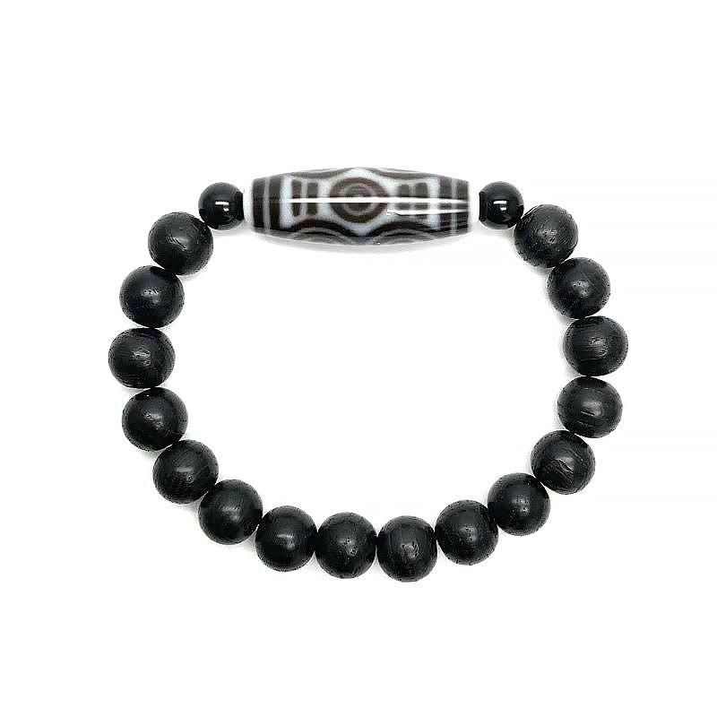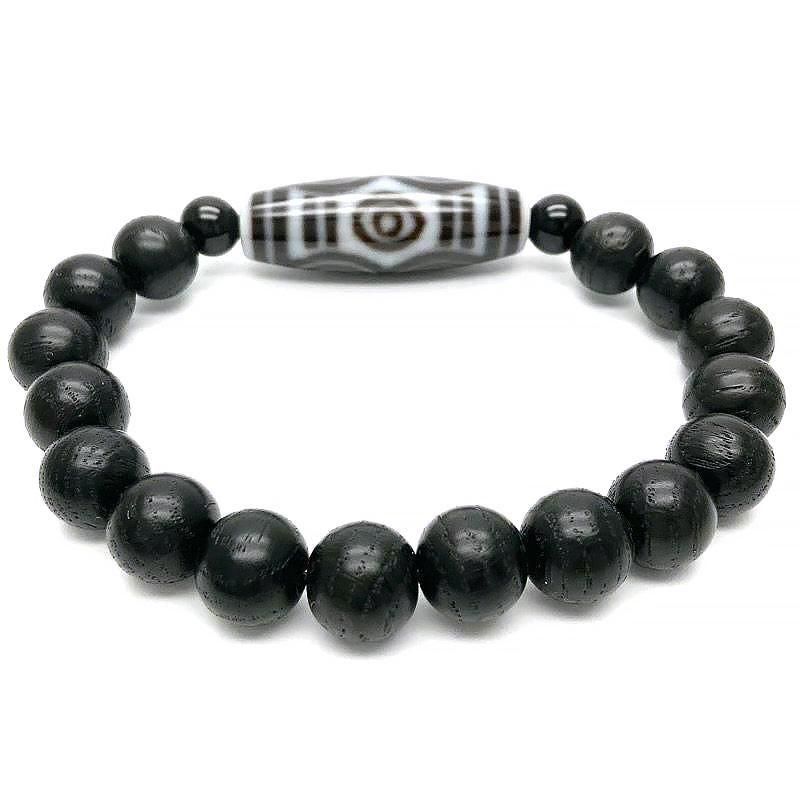 龍眼天珠を神代木ビーズと組合せた天珠のブレスレット。