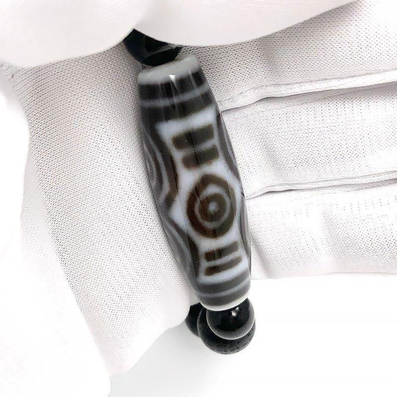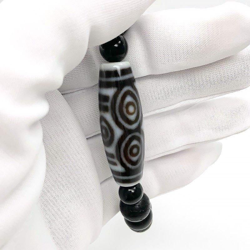 【 龍眼天珠 神代栗ブレスレット 】 りゅうがんてんじゅ 玉髄 チベット 御守り 模様 紋様 天然石 限定品 パワーストーン meno_ovs-brc-12-RC