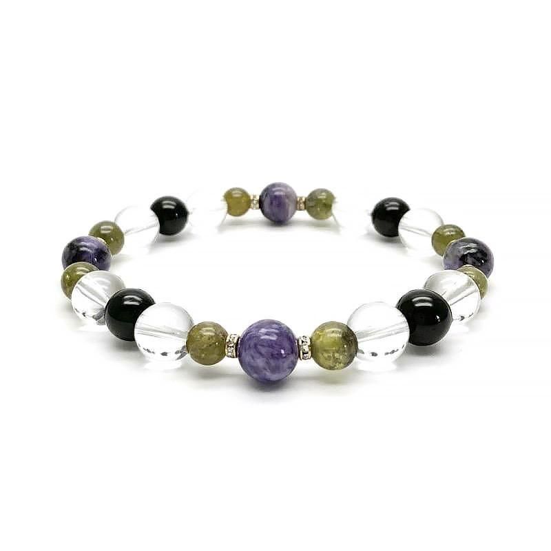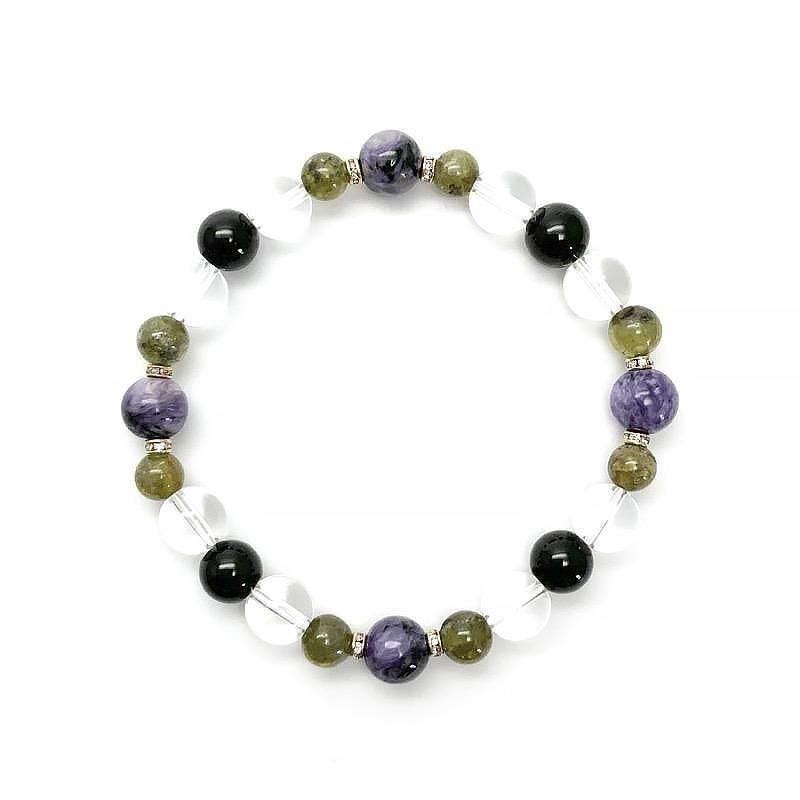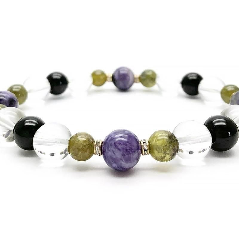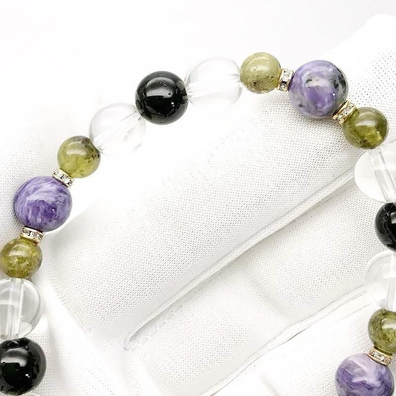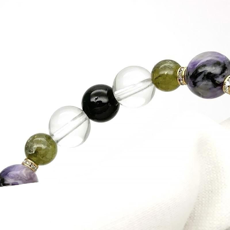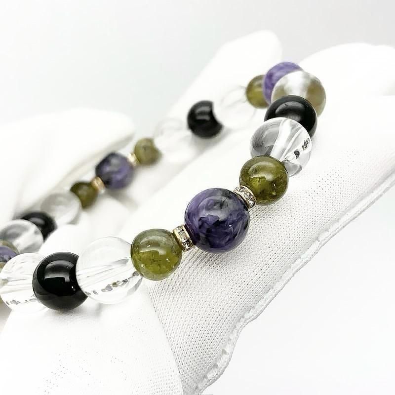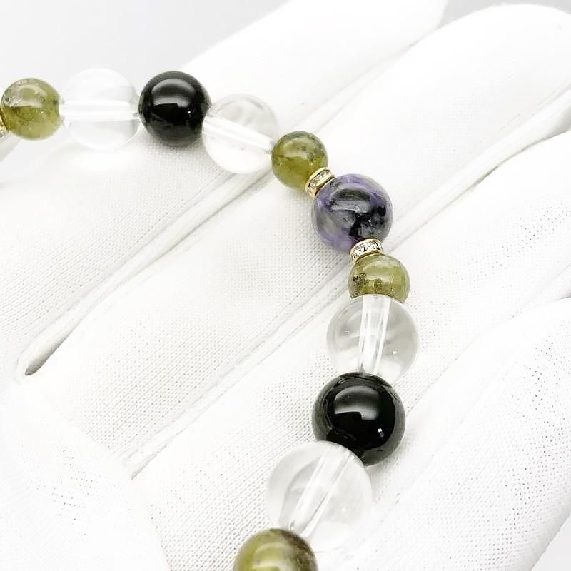 【 天然石ブレスレット チャロアイト MIX 】 チャロアイト グリーンガーネット トルマリン 水晶 ヒーリング 癒し 開運 お守り ヒーリングギフト ブレスレット 一点物