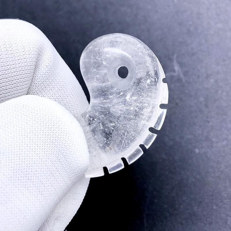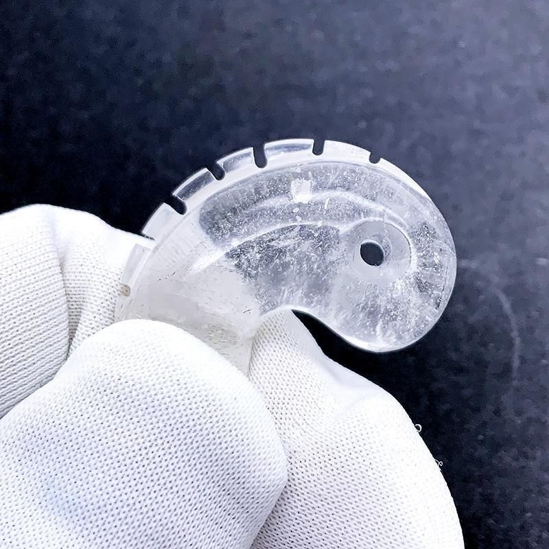 透き通る希少部位を贅沢に使用した勾玉で、吸い込まれそうな美しさです。