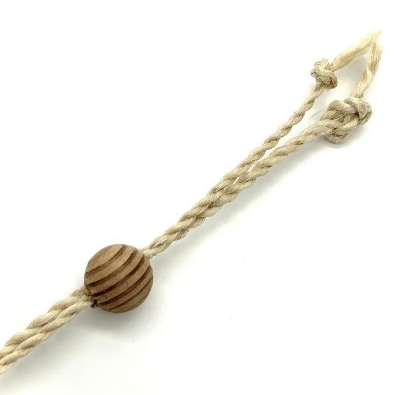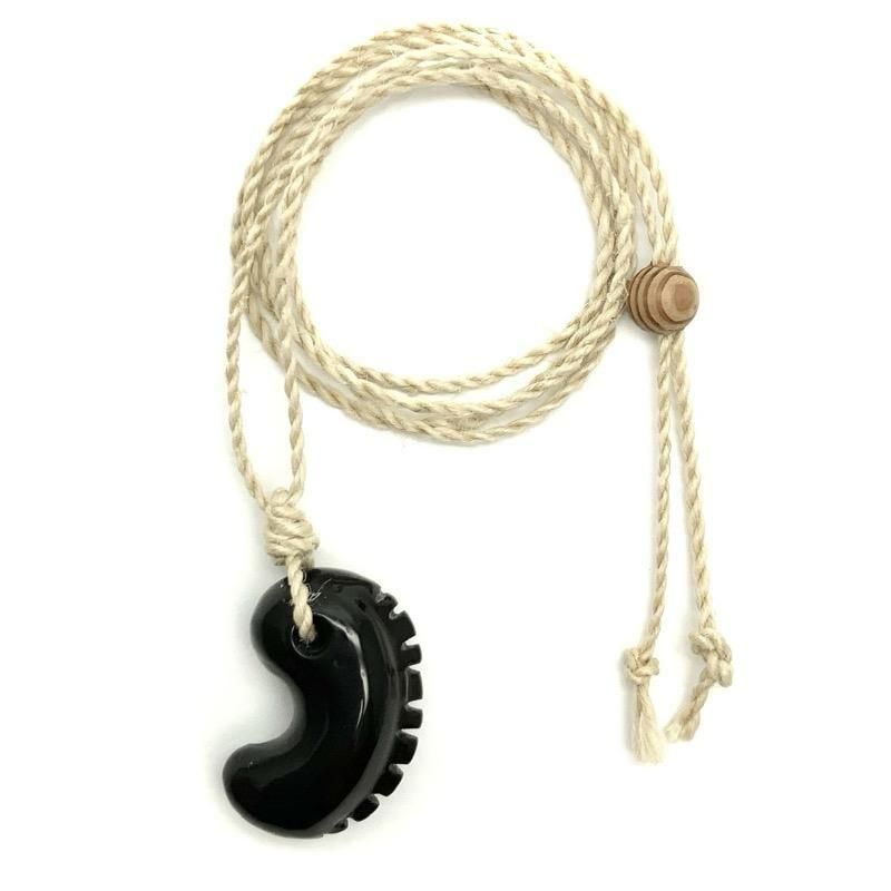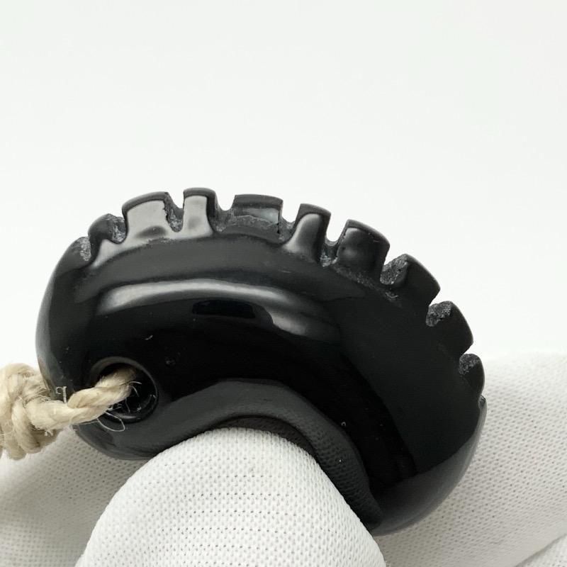 黒の勾玉は大麻の紐と相性が良く、厄除けの効果を助け合います。