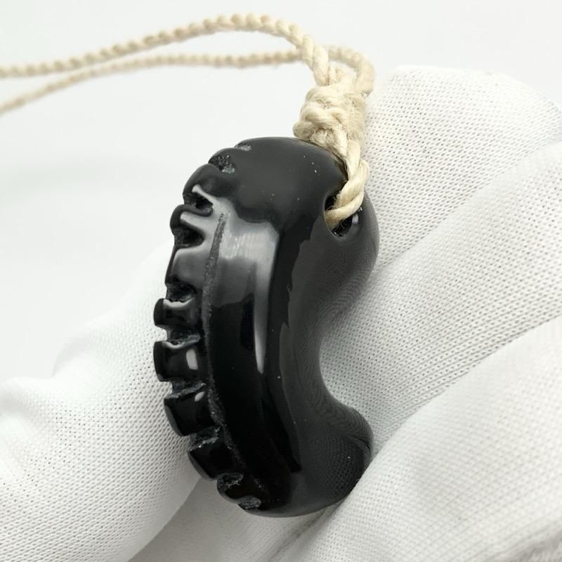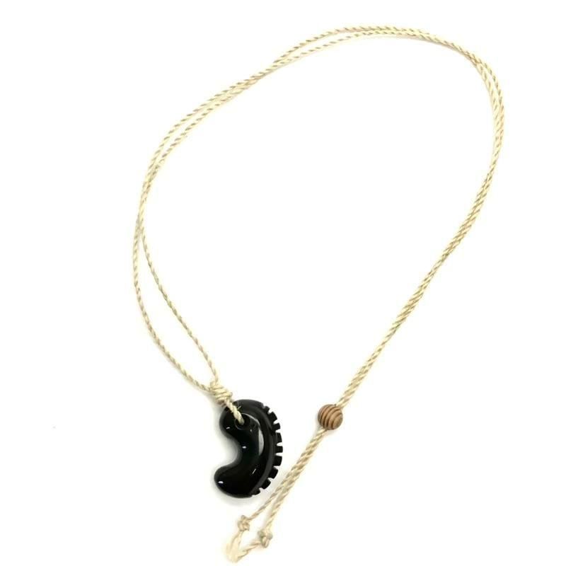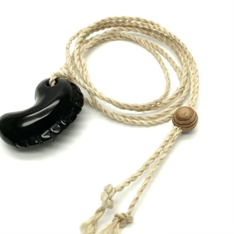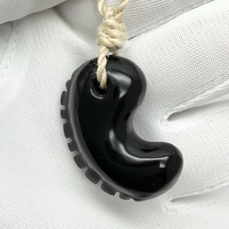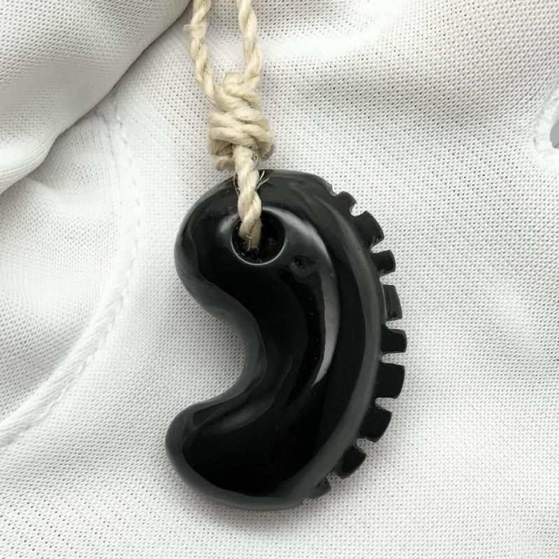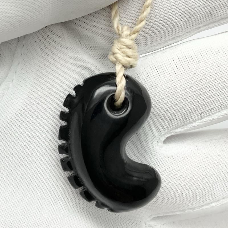 黒曜石の勾玉を国産大麻紐ペンダントにお仕立てしました。