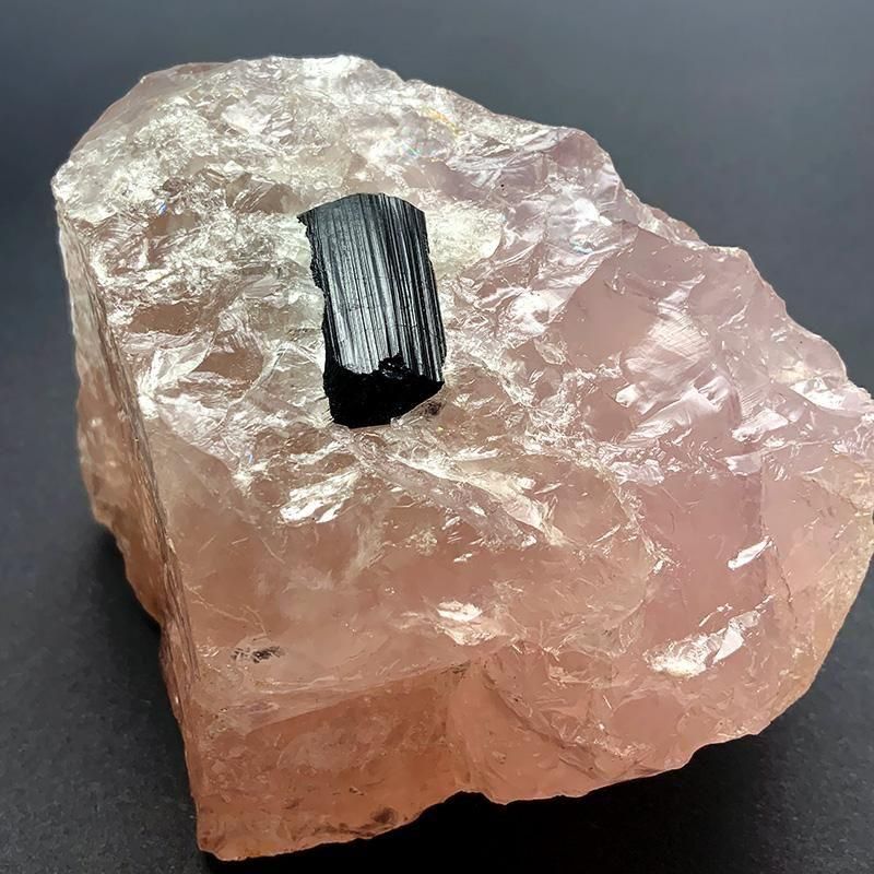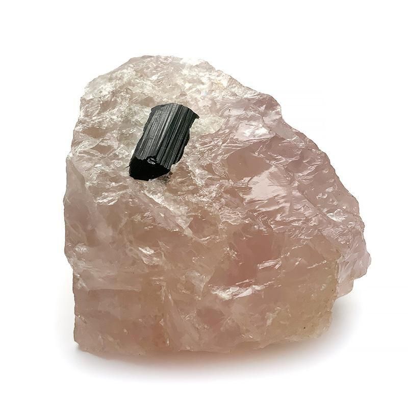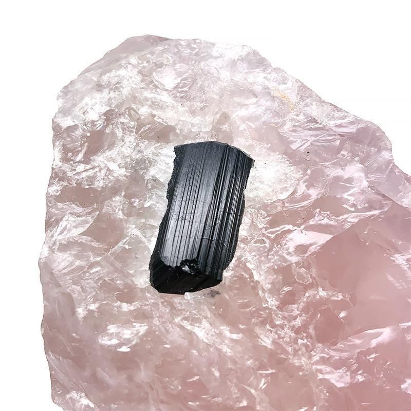 【 ブラックトルマリン共生ローズクォーツ 】 ブラジル産 paragenesis 紅水晶 バラ水晶 鉄電気石 tourmaline 原石 天然石 レア rose-rock-5