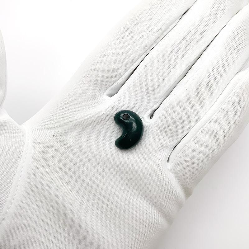 希少な碧緑色の原石から生み出された勾玉は、色も地模様も様々。