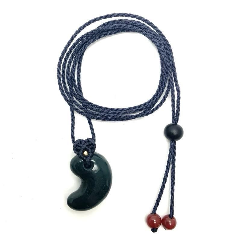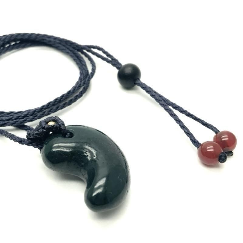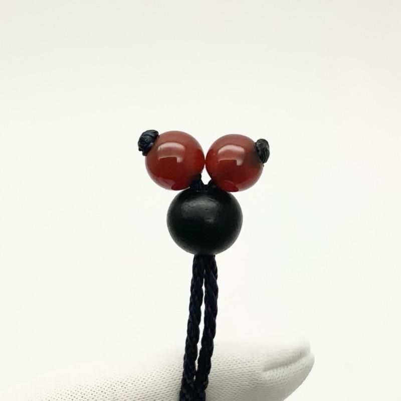 素材 | 【勾玉】 碧玉 【編込部】 蝋引き紐 紺色 14kgf 3mm玉 1個 【留め具】 黒柿 8mm玉 1個 赤めのう 6mm玉 2個 |