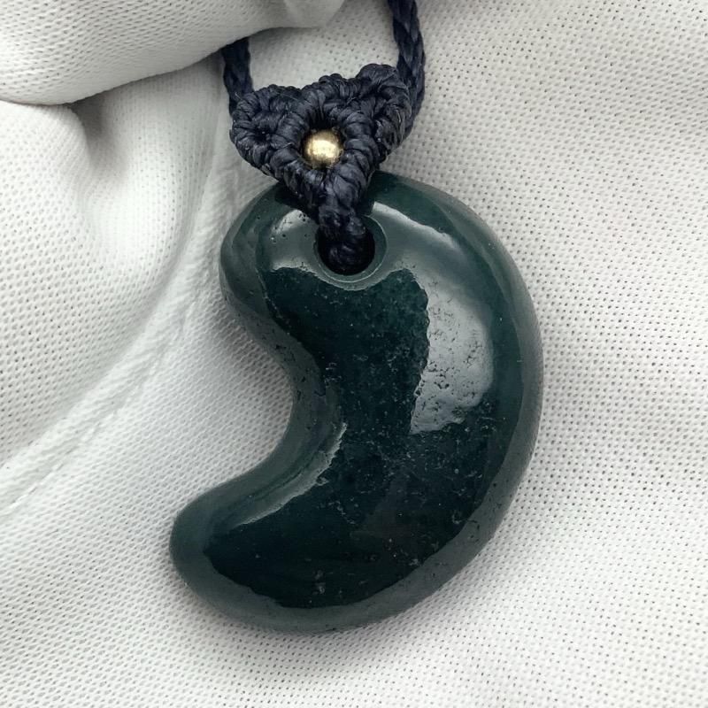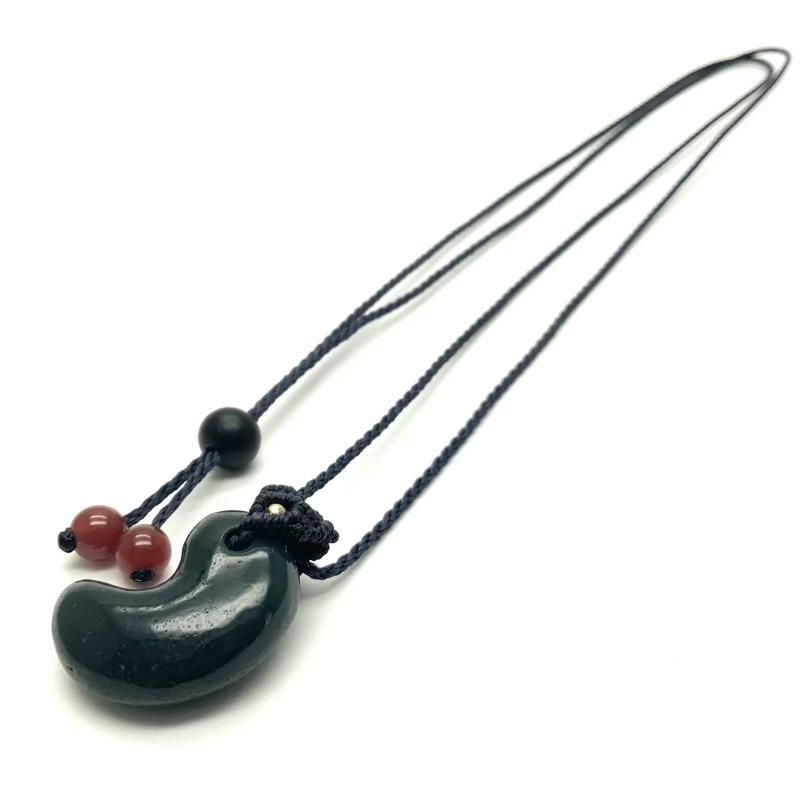 【 出雲石/碧玉 勾玉 中 マクラメ編みペンダント 】 出雲石 国産 花仙山 青めのう 緑 限定品 稀少 レア パワーストーン 14kgf 赤めのう 黒柿