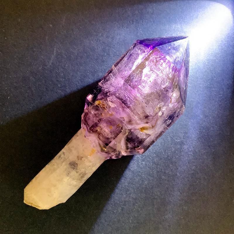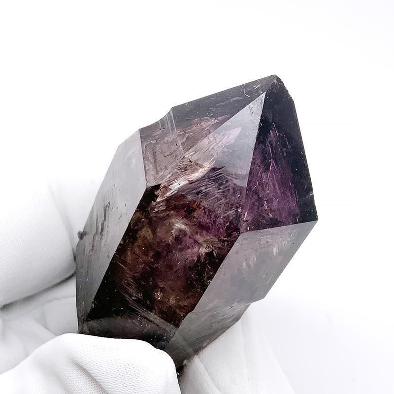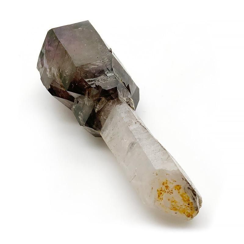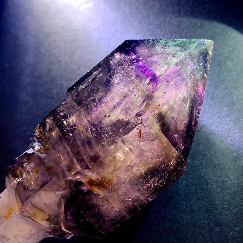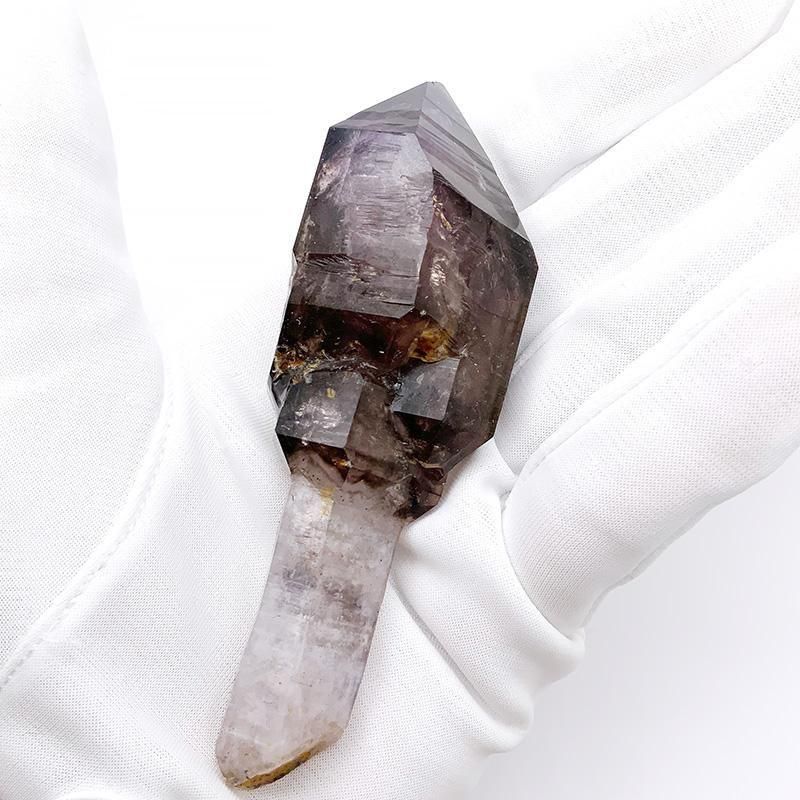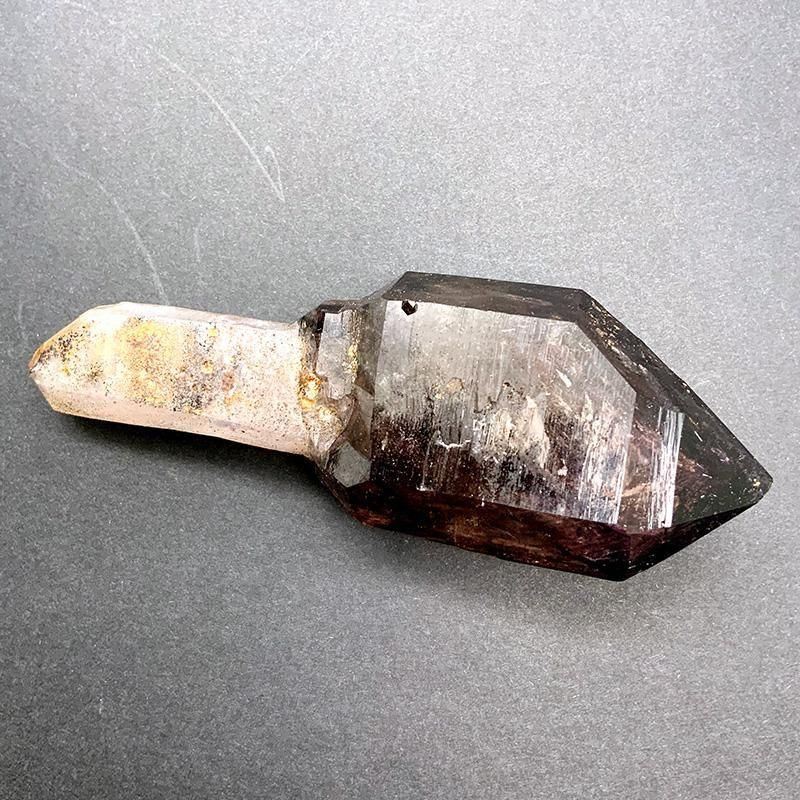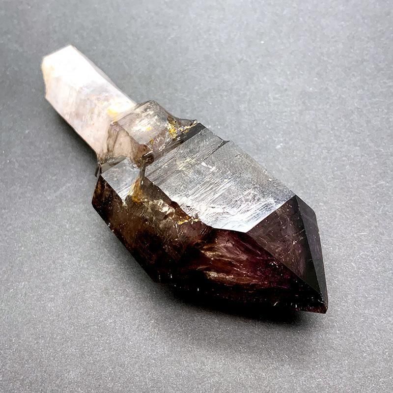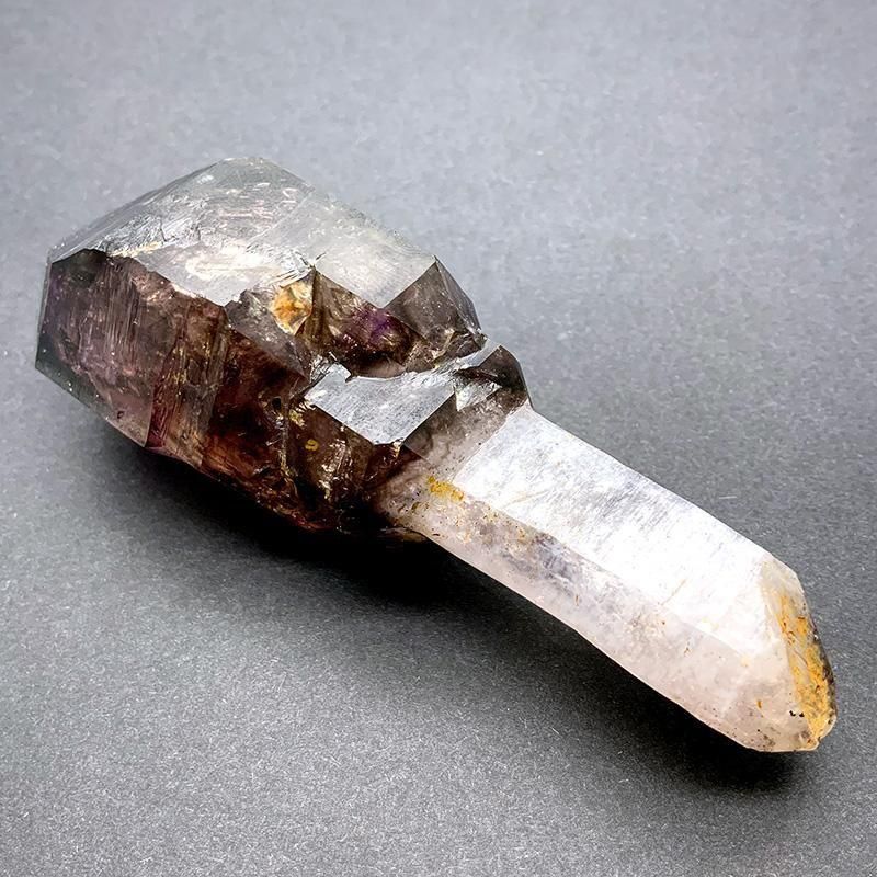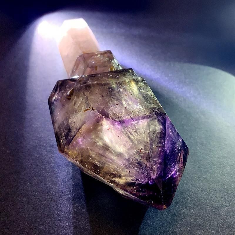 アメジストとスモーキークォーツが重なり合い、深紫からスモーキーへと移ろう独特のグラデーションを描きます。