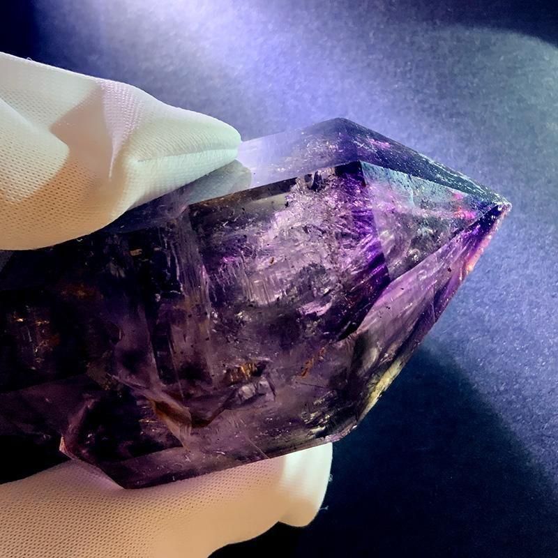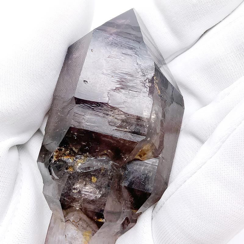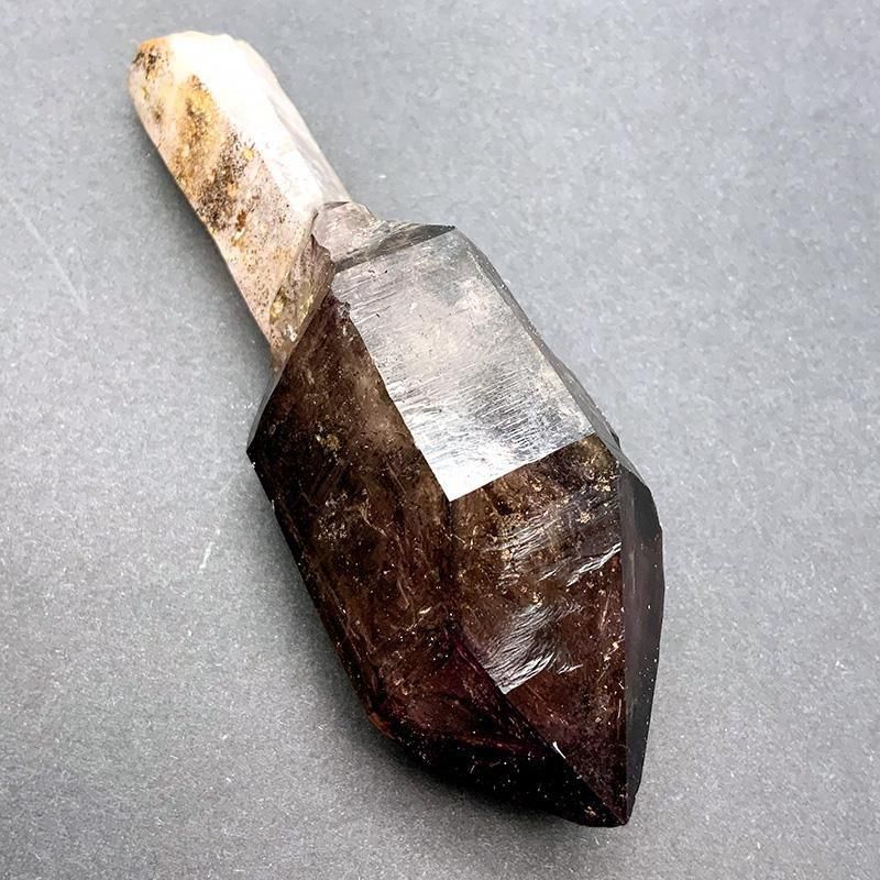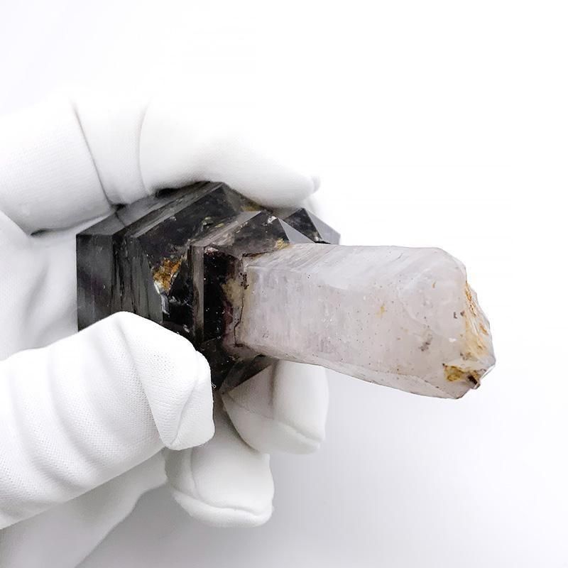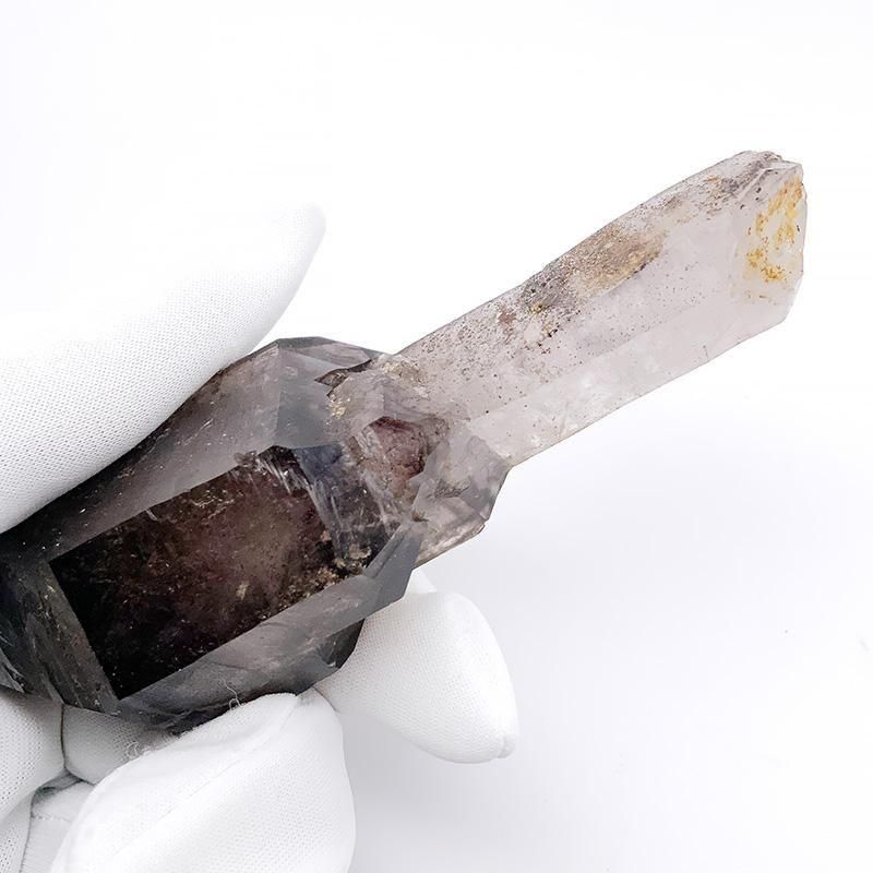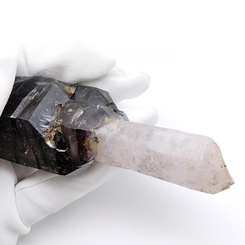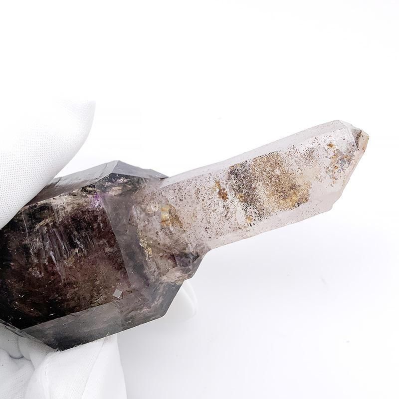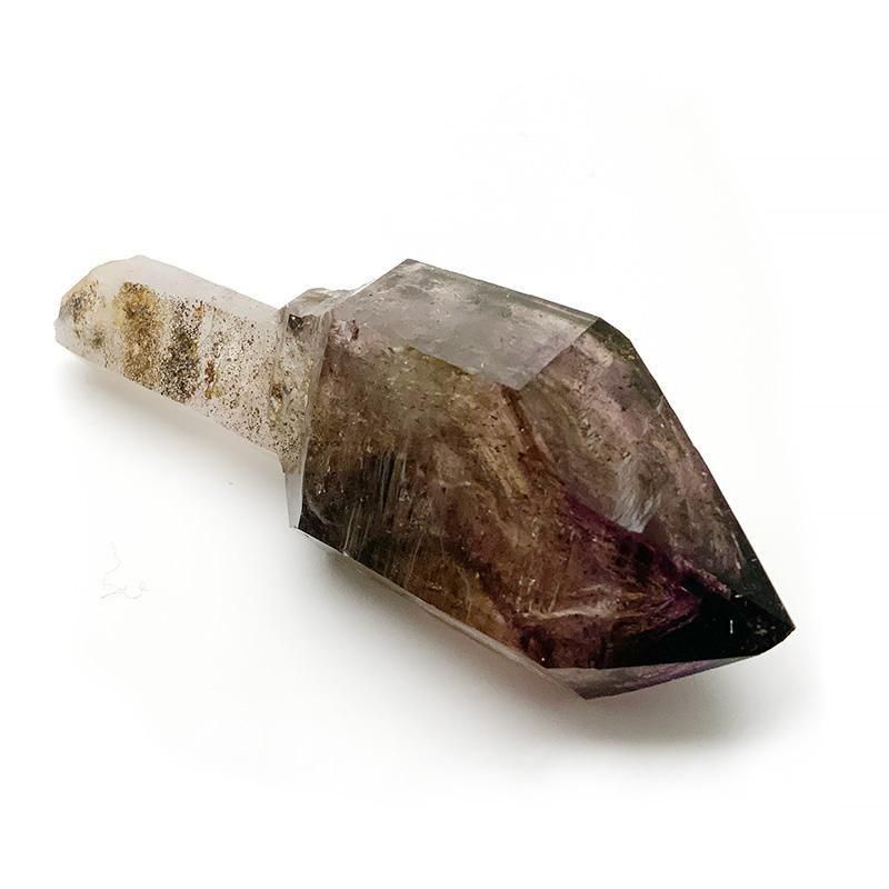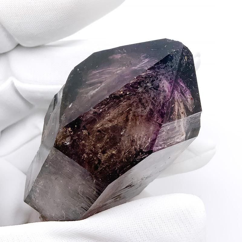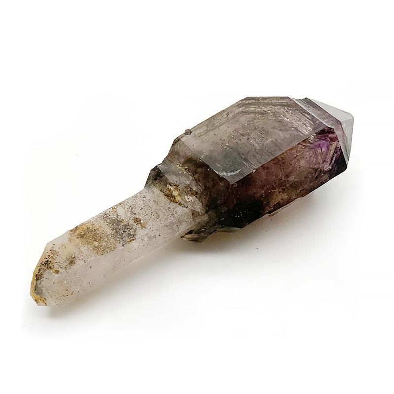 アメジストとスモーキークォーツが重なり合い、深紫からスモーキーへと移ろう独特のグラデーションを描きます。