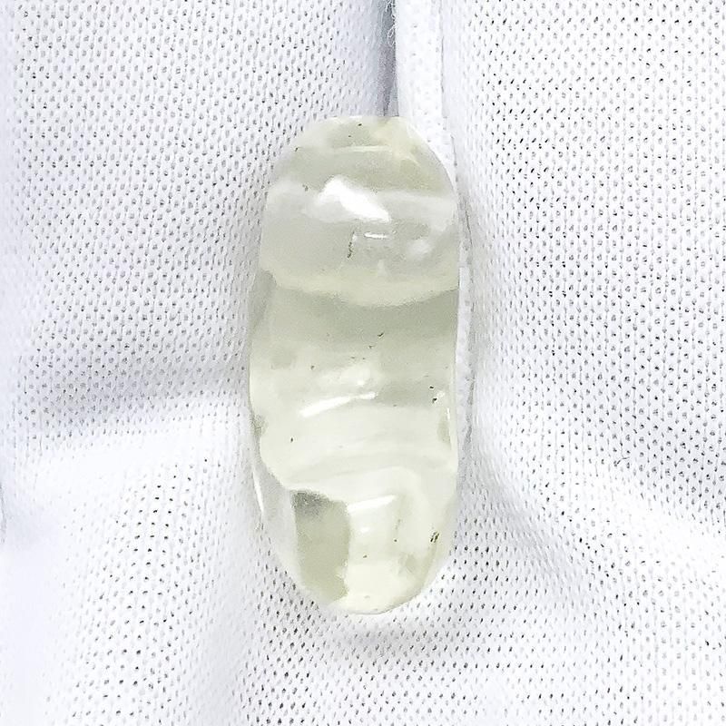 淡い黄色の透明感が美しく、光を透かすと内部に天然由来のインクルージョンが浮かび上がります。