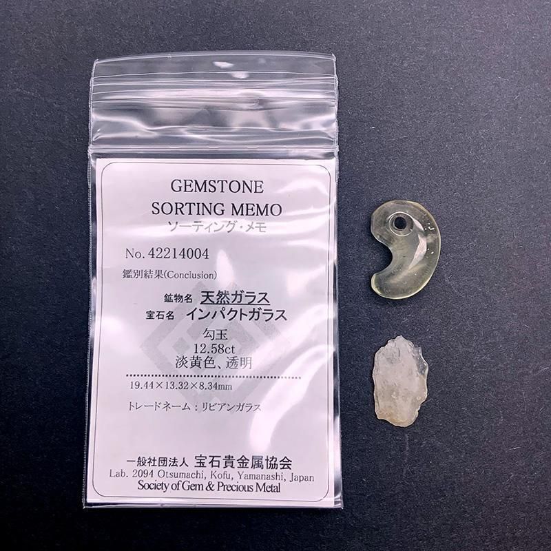 付属品:ソーティングメモ(簡易鑑別情報となりますが、正式な鑑別書ではありません)/リビアングラス端材