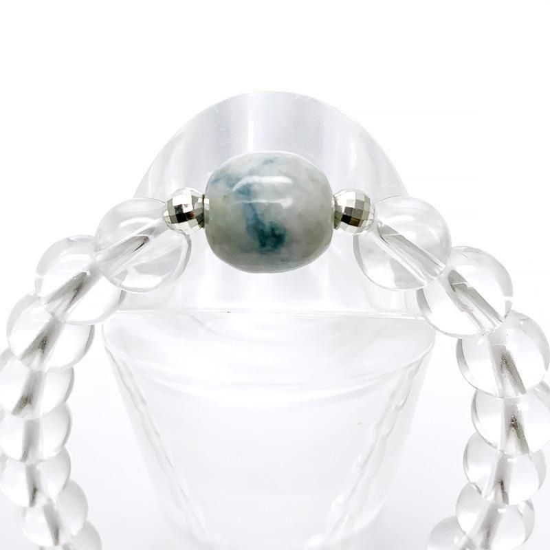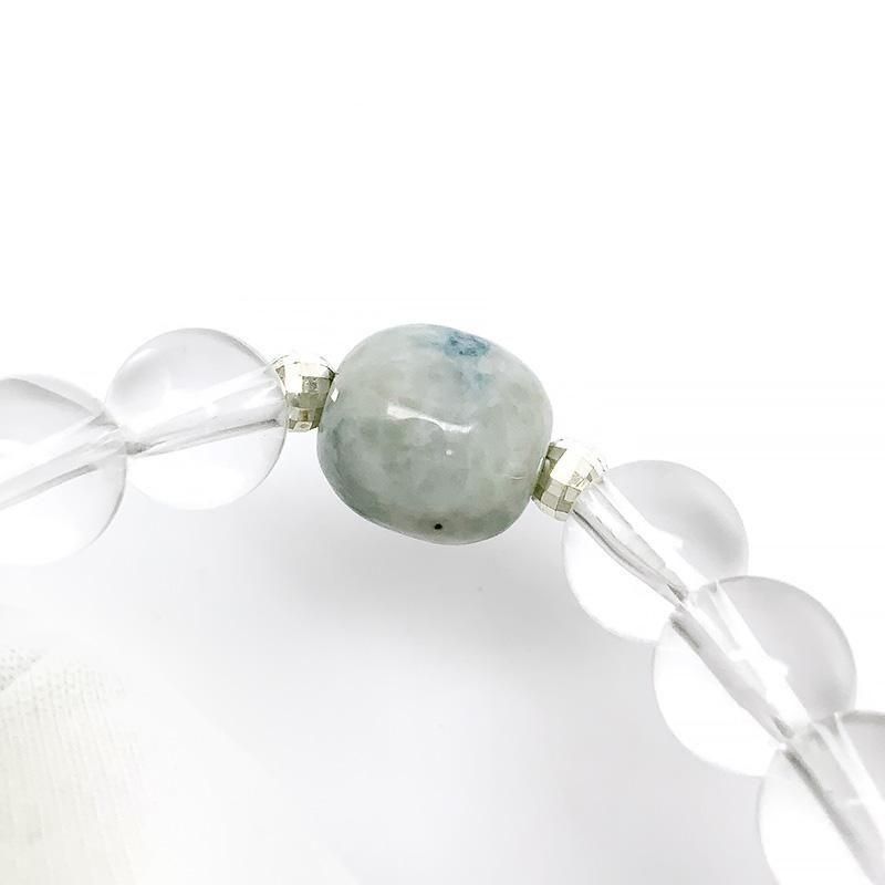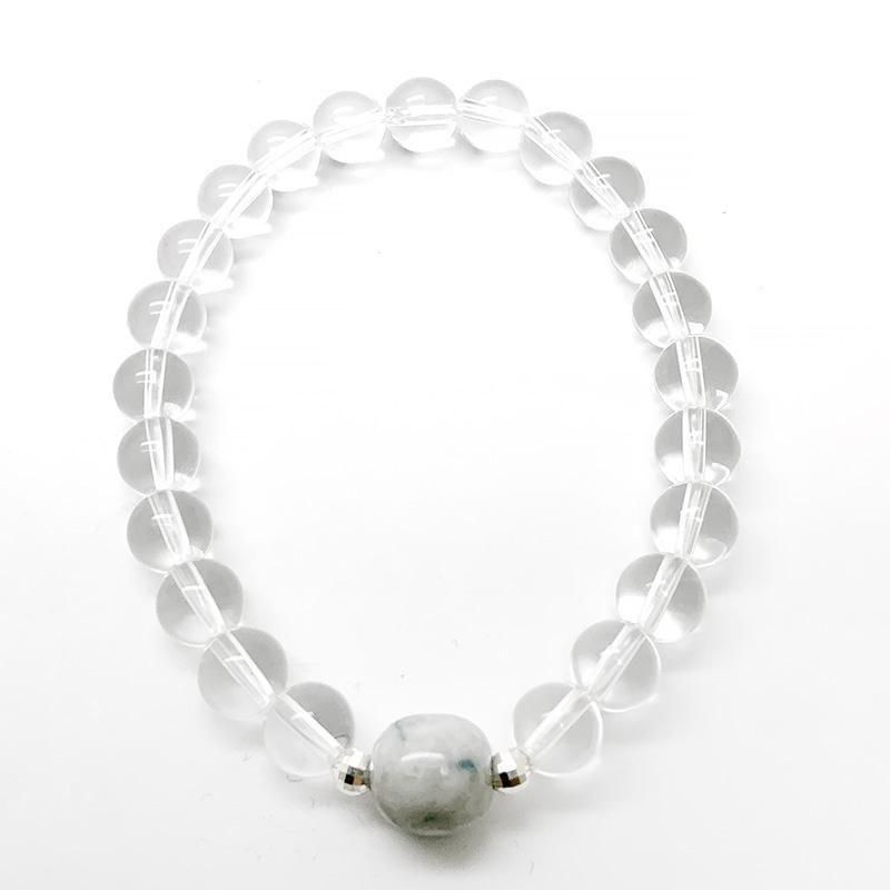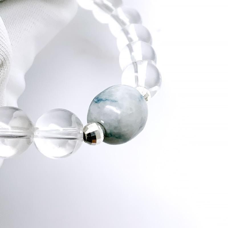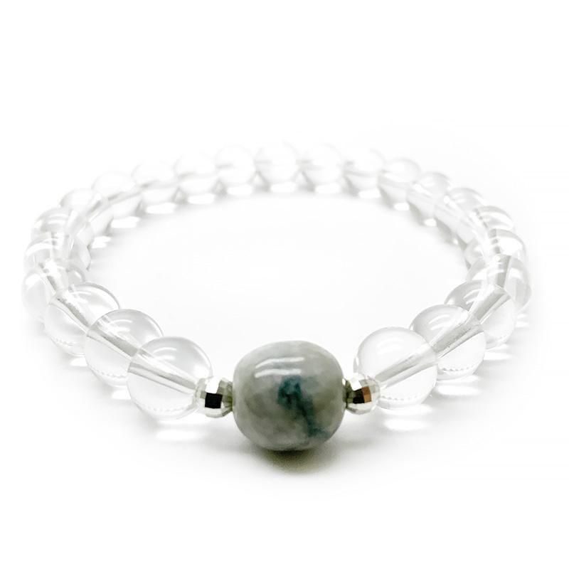 翡翠の深みと力強さ、透明な水晶の気品、そして銀のきらめきが響き合い、手首の上にミニマルな美の調和を描き出します。