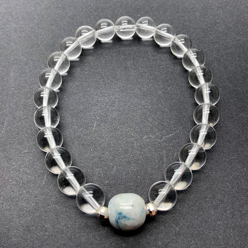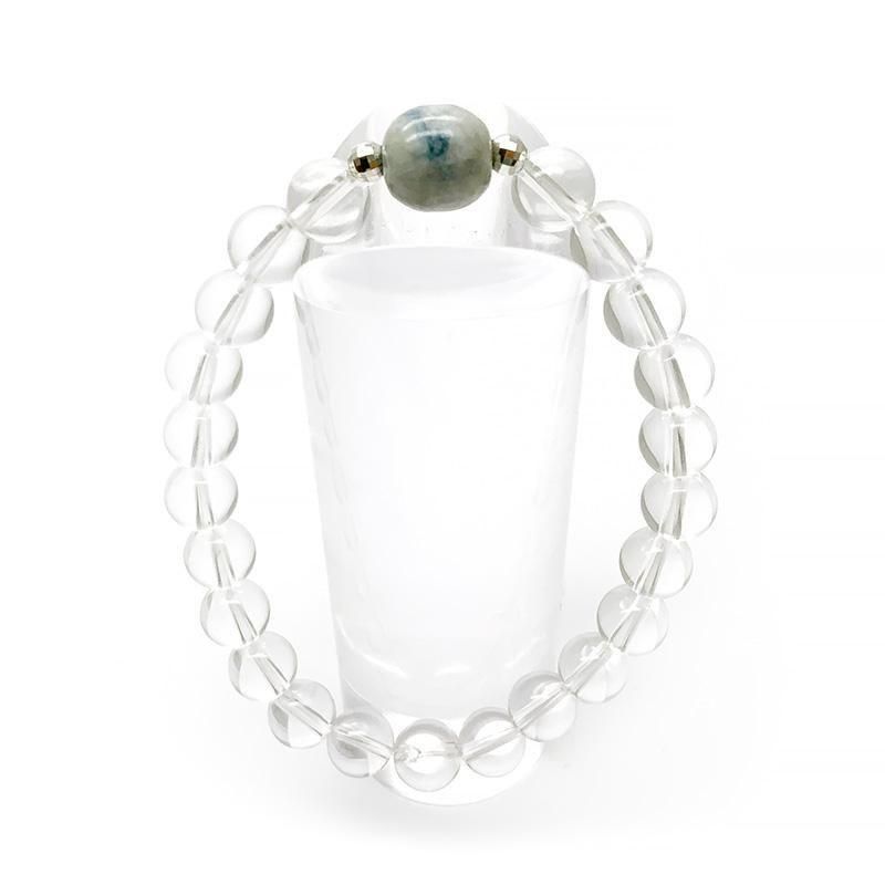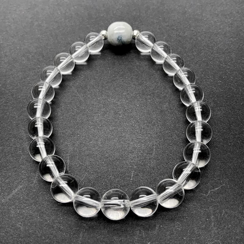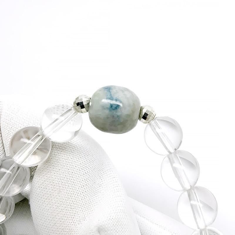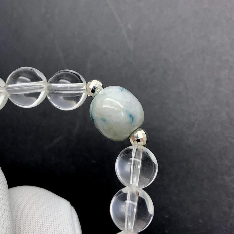 翡翠の深みと力強さ、透明な水晶の気品、そして銀のきらめきが響き合い、手首の上にミニマルな美の調和を描き出します。