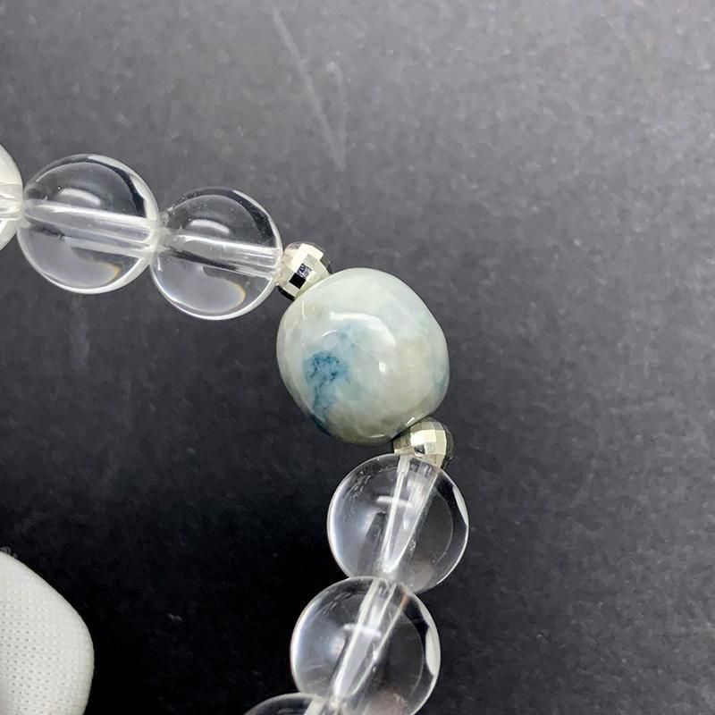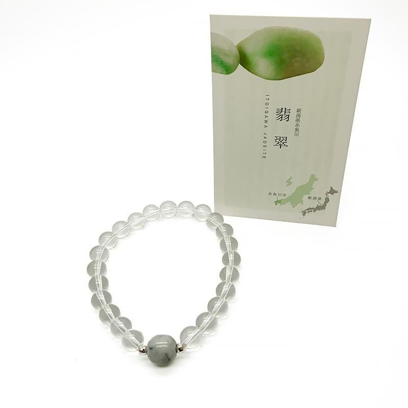 【 糸魚川翡翠(横川産)樽玉×水晶×Agミラーボール ブレスレット 】 糸魚川産翡翠 限定 一点物 天然石 自然石 希少