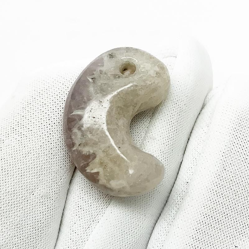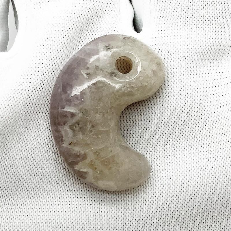 なめらかに磨かれた曲線は手にしっとりと馴染み、柔らかな光のグラデーションを手元で楽しむことができます。古来より「心の平静」や「精神の安定」をもたらすとされる紫水晶のエネルギーと、魔除け・開運の象徴である勾玉の形状が融合し、身につける人の心に深い安らぎをもたらすことでしょう。