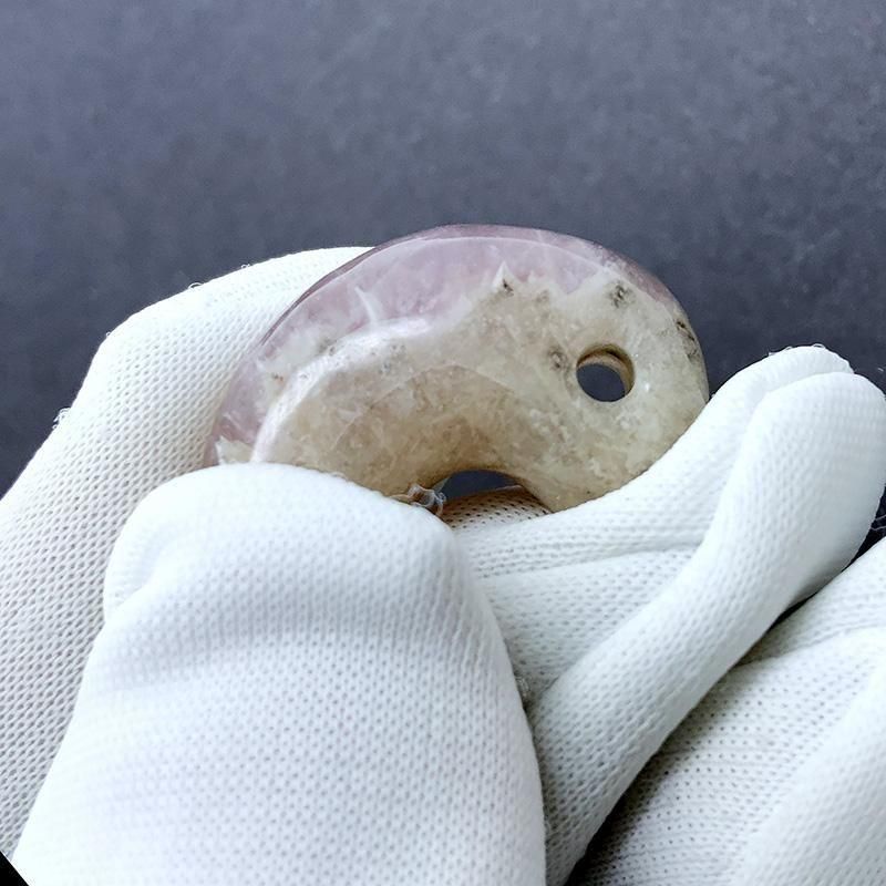 乳白から淡い紫へと移ろう色合いが美しく、透明感のある部分と霞むような部分が重なり合い、角度によって異なる表情を映し出します。紫水晶特有の清澄な輝きに、天然のインクルージョンが織りなす神秘的な景色は、まさに夜明け前の空が静かに光を帯びはじめるひとときを思わせ、東北の山間に宿る静寂な美しさを表現しています。