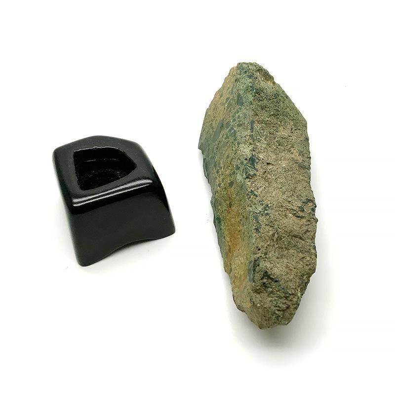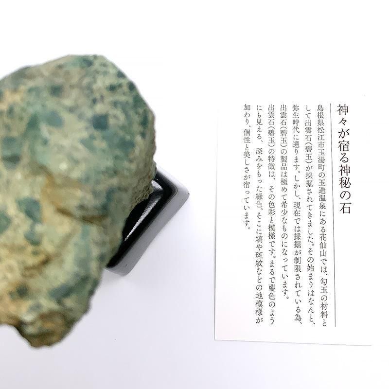 【 碧玉原石 台付き 】 出雲石 国産 花仙山 青めのう 緑 限定 一点物 希少 原石 天然石 パワーストーン