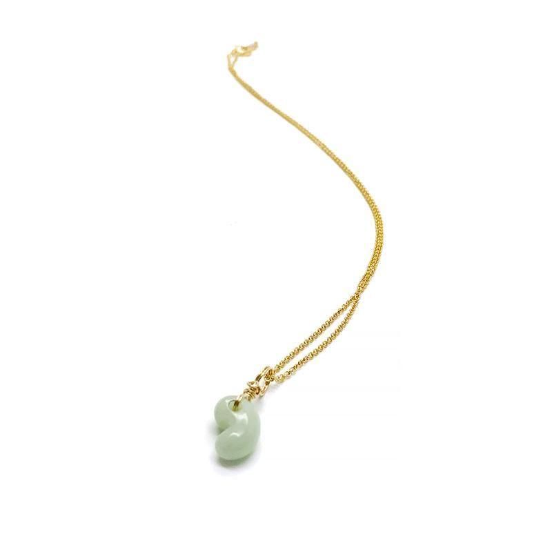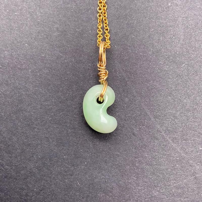 翡翠の優しい色合いと勾玉の丸みが、シンプルながらも愛らしい存在感を放ちます。