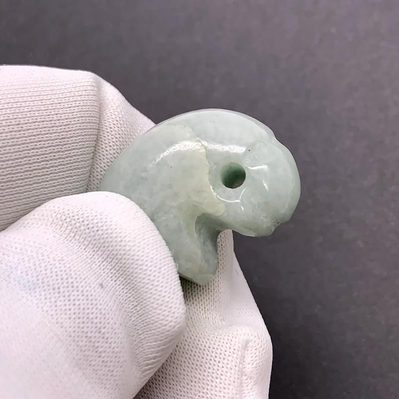 淡青緑〜白緑の石目は光で穏やかに艶めき、側面のボリュームも十分。品よく存在感のある一本です。