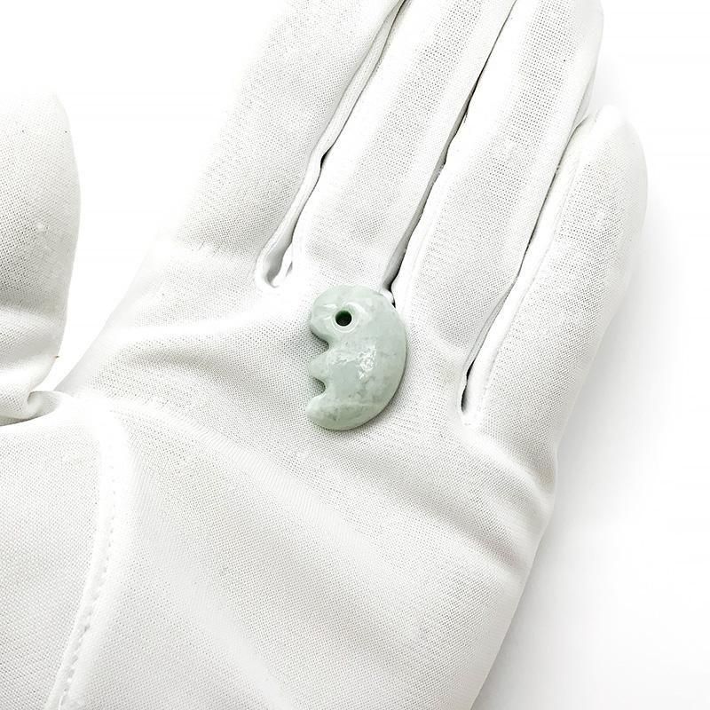 やわらかな面取りが手になじみ、掌にのせると翡翠特有のしっとり感が伝わります。