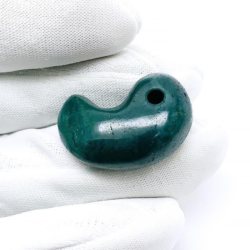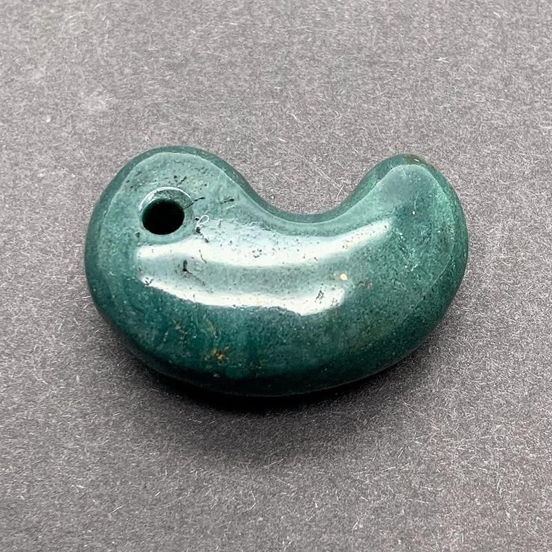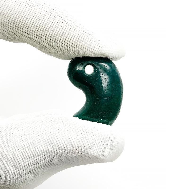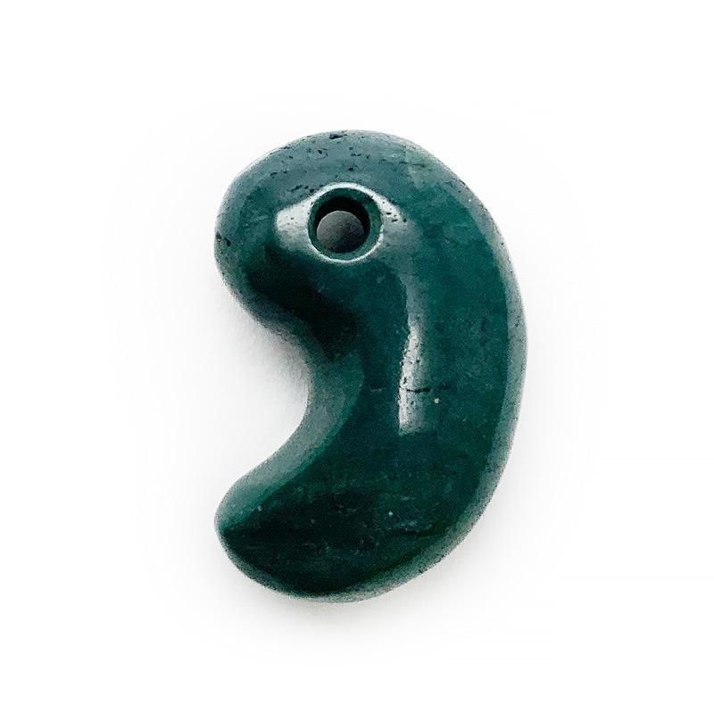 希少な碧緑色の原石から生み出された勾玉は、色も地模様も様々。
