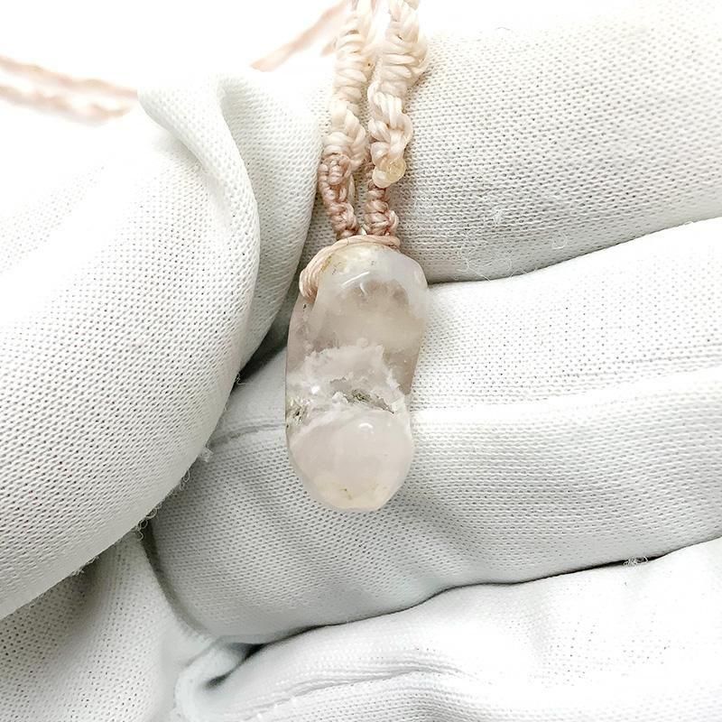 また背中に落ちるマクラメ編みのエンド部にも水晶を