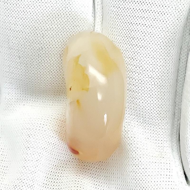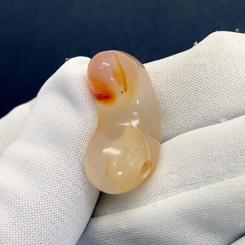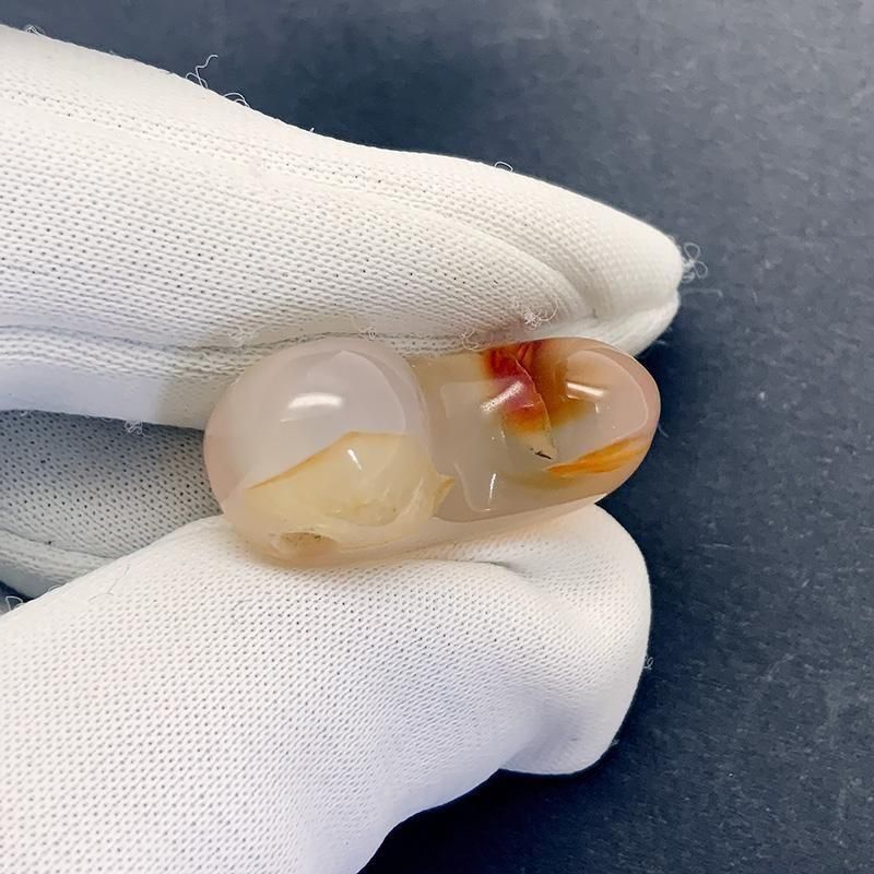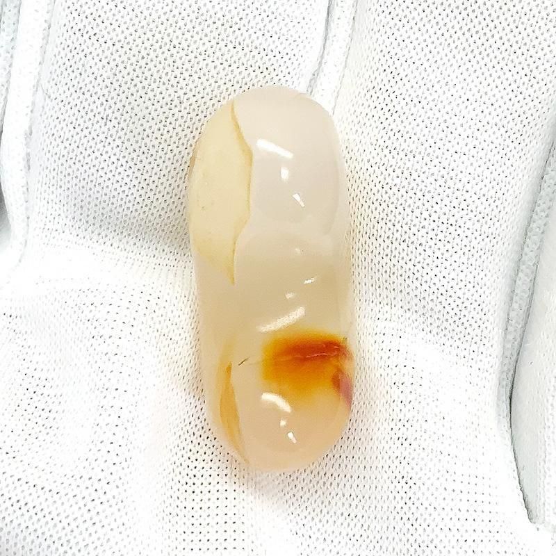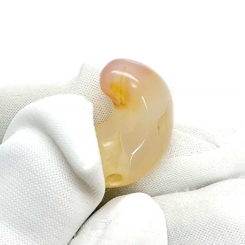 透きとおる乳白の石肌に、橙から赤茶へと溶けこむ色模様。まるで夕暮れの陽が、静かな湖面を染めていくような温もりをたたえています。