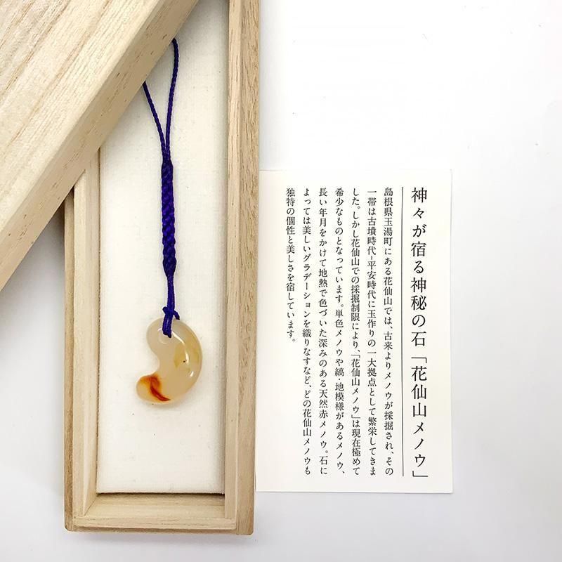 出雲・花仙山の地から生まれた、稀少なめのうの勾玉です。