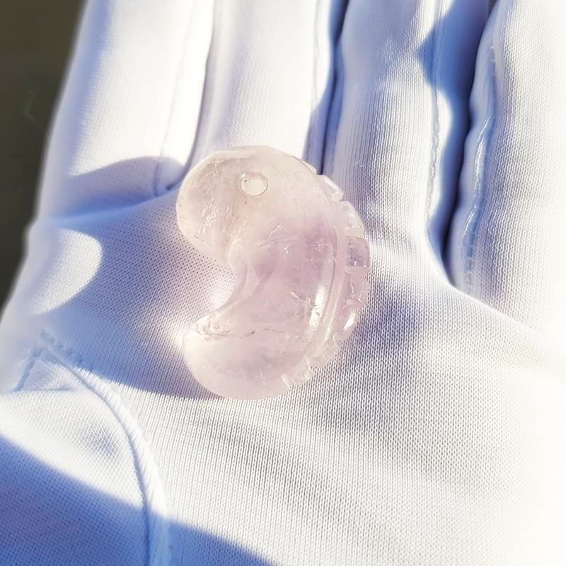 勾玉のたてがみは雄々しさの象徴でもありますが、ラベンダーアメシストの柔らかい色味と