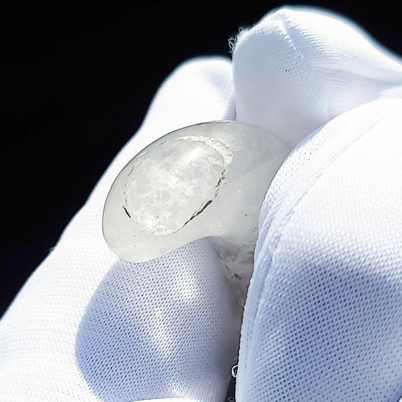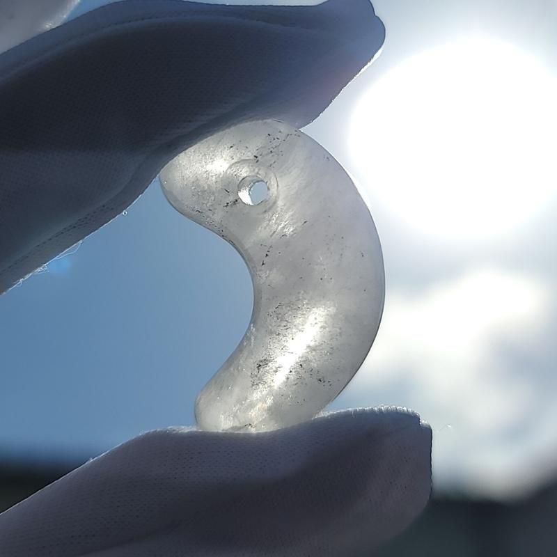 透き通る希少部位を含んだ乙女水晶を贅沢に使用した勾玉で、