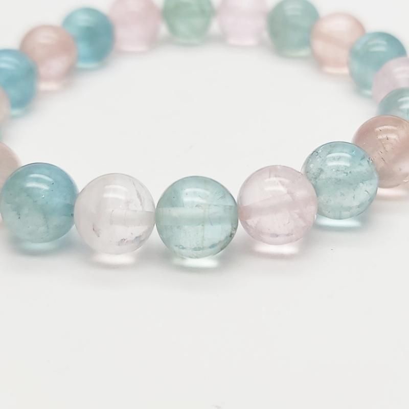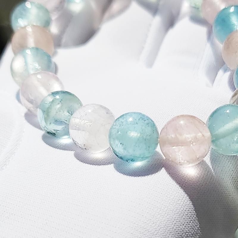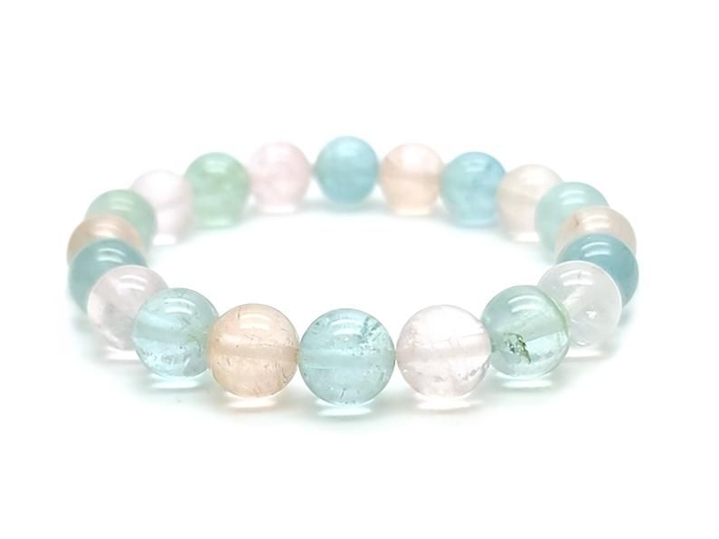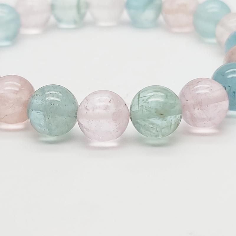 【 アクアマリン モルガナイト ブレスレット 10mm玉 】 ベリル ミックス 天使の石 ピンクベリル 人魚石 緑柱石 愛情 癒し クリアカラー 青色 ブルー 天然石 パワーストーン
